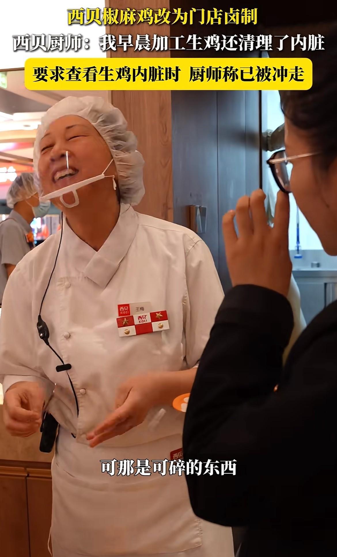 西贝的笑料真是比调料都多,连厨师阿姨都笑的编不下去了! 西贝麻椒鸡改为门店卤制,西贝郑州探十里店的厨师阿姨,对记者说她们的麻椒鸡需要卤制20分钟,然后在泡5分钟就可以出来了,她早晨加工生鸡的时候还清理了鸡内脏!不过当记者提出,想要看看处理过的鸡内脏的时候,厨师阿姨却说处理过的鸡内脏,都已经倒进垃圾桶里了! 本以为这事也就到此结束了,可没想到记者却又提出,要去垃圾桶里看看被扔掉的鸡内脏,这时候厨师阿姨明显的心虚了,连忙改口说处理的鸡内脏,基本上都被水池冲走了,当记者问这位厨师阿姨,刚才她还说在垃圾桶了啊,这时候厨师阿姨都忍不住笑场了,只能尴尬的解释说,那都是很碎的东西,基本上就是很少很少的。 但凡是个正常人都应该知道,这处理过的鸡内脏,怎么可能很碎很小呢,又怎么可能会被水池给冲走呢?很明显这位西贝的厨师阿姨,硬是把生鸡说成了活鸡,结果又难以自圆其说,甚至自己都笑的编不下去了,可真是验证了那句话,当你开始撒第一个谎的时候,后面就会用无数个谎来圆第一个谎! 感觉西贝在搞笑这方面,真的是从来没让大家失望过啊! 信息来源:百姓315