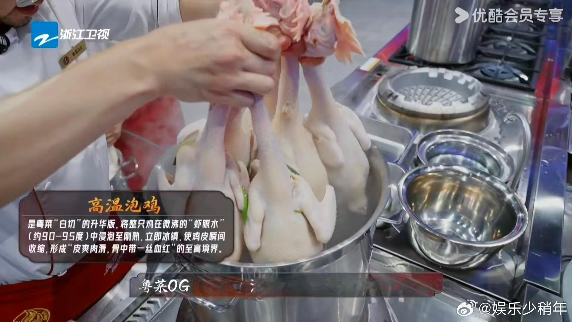 真正的大厨两只手提六只鸡焯水炙热游戏百厨大战 《炙热游戏:百厨大战》团队赛亮点多多!素厨粤菜og两只手提六只鸡在锅里焯水,用独特手法让鸡皮脆肉质嫩,水温和时间拿捏得死死的,这才是真正大厨的风采!