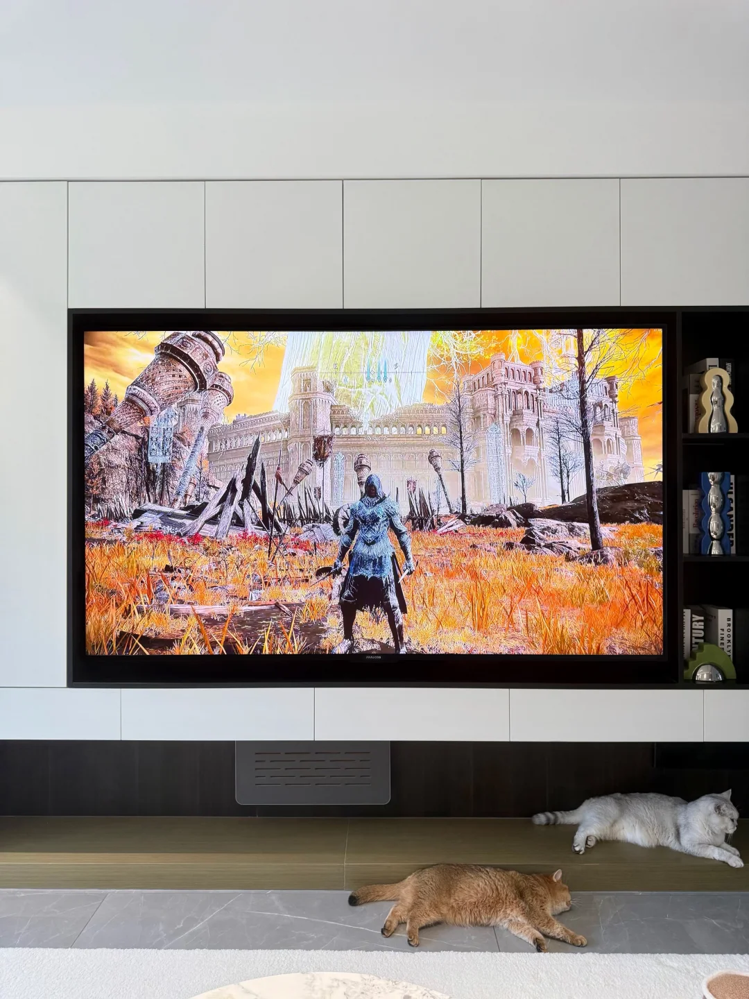 长大遇到志同道合的伴侣 一起努力买一套属于自己的房子 装成我们理想的样子 套内110平足够我们两人五猫住啦 我跟家属平时宅家都喜欢看电影追剧打游戏 所以新家装修时就想着在客厅装一台超大屏电视 对比了很多品牌很多型号,精挑细选了这款雷鸟 鹤6 Ultra 98英寸放在我家3.6米开间客厅刚刚好 MiniLED低反巨幕观影真的很爽🤩 不仅画质清晰、色彩鲜艳,还能很好的避免反光问题 像我家采光很好,即使大晴天追剧也不会有讨厌的倒影 人物的每一根发丝、微表情都能看的清清楚楚 加上电视自带2.1 Hi-Fi音箱,重低音分明、音质绝绝子 视觉+听觉的双重享受,沉浸感满满✨ 4K高清画质加上288Hz的高刷 家属用它来玩游戏也是特别丝滑、一点也不会卡顿拖影 这款电视使用的体验感也特别好 开机没广告,界面简洁清爽 操作简单便捷,家里老人也是一看就会用👏 而且它是一级能效的,大屏用起来也很省电 宅家时即使开一整天电视也不用担心电费 精算过的98英寸的 上电梯无压力 最近在装修的小伙伴真的可以无脑冲 关键是它性价比真的很高 现在国补下来价格超级划算 家里有这样一台好用的电视 宅家幸福感大大提升 周末睡个大懒觉、起来吃个早午饭 再找个喜欢的电影两个人一起窝在客厅看 真的太舒服惬意了 客厅装修灵感库电视机推荐雷鸟电视雷鸟鹤6ultraMiniLED电视家庭影院电视我的宅家日常家的养成计划买家电家居上京东