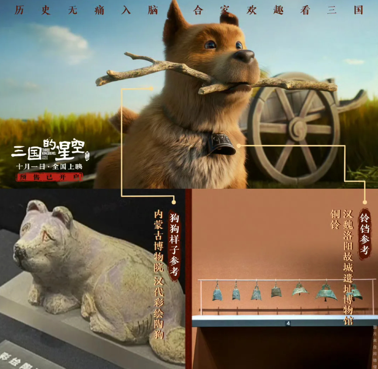 袁绍暗紫锦袍对应陕历博文物,街头艺人神还原国博击鼓说唱俑,连曹操的狗都源自内蒙古博物院陶狗。宴饮器物、士兵甲胄皆有博物馆原型,看电影像沉浸式逛展!