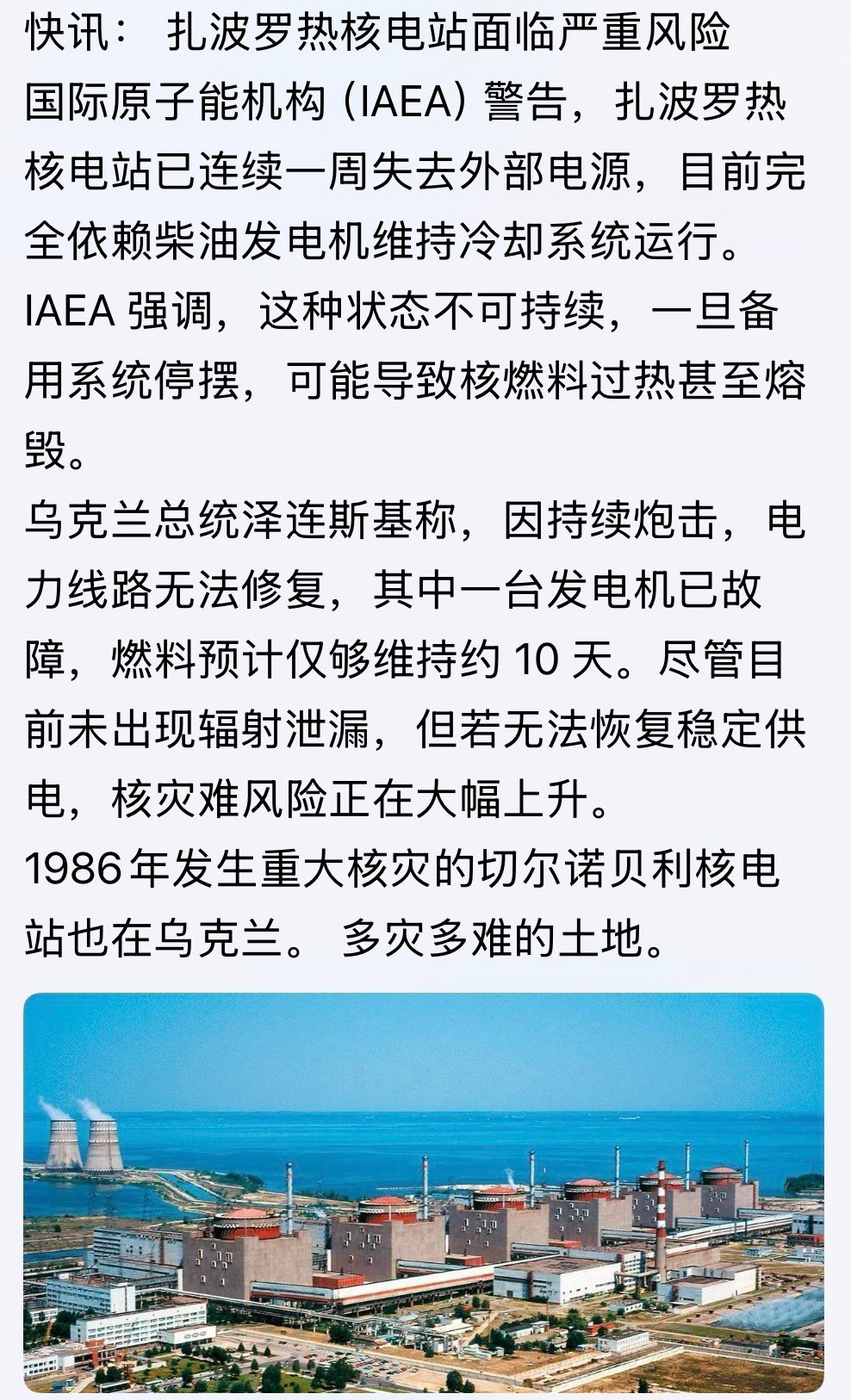 快讯: 扎波罗热核电站面临严重风险俄乌战争