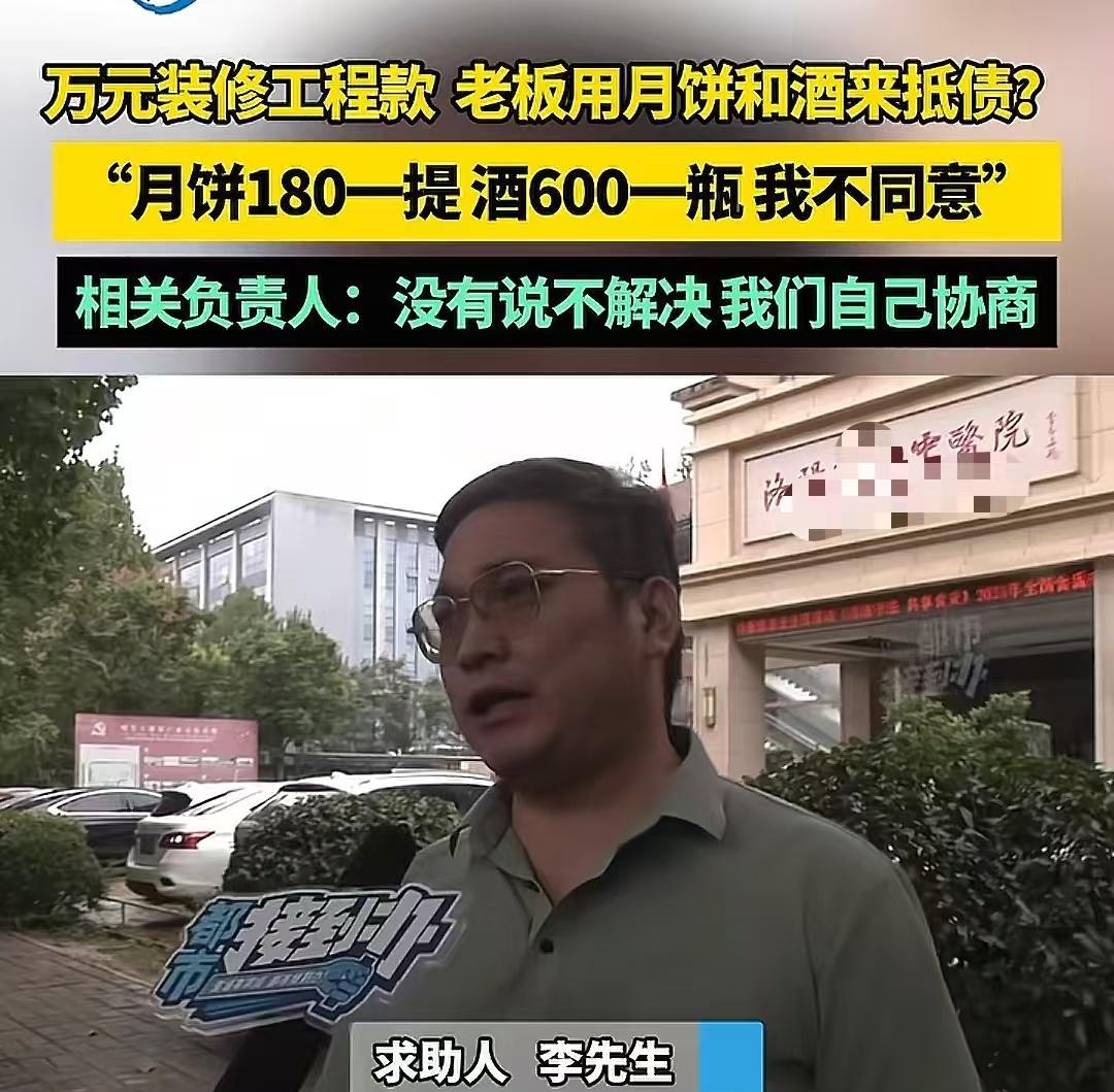 河南洛阳,男子给中医院装修,结果对方说工程款用月饼和酒来抵债!男子:“月饼180一提,酒610一瓶,我怎么吃得起?况且工人只要钱啊!”网友:我以后去你们医院看病,住院押金可以交月饼和杂牌白酒吗? (来源:都市报道) “这么大一个中医院,总共就1万多块钱的工程款,居然欠了我一年多,这简直不可理喻!” 一见到调解员,李先生就像打开了话匣子,满心的委屈如潮水般倾泻而出。 李先生是个包工头,手下带着几个工人一起做装修的活儿。 2024年4月,一个电话主动找上李先生,让李先生带人去中医院干点装修活,还信誓旦旦地说干完活马上结账。 李先生心想,这么大的医院,信誉肯定没问题,不会赖这点钱,便放心地让工人们先去把活儿干完了。 可谁能想到,活儿干完后,要钱的路却异常艰难。这一要,就是一年多! 工人们天天眼巴巴地盼着能拿到工钱,改善一下生活,可每次都失望而归。 这不,快到中秋了,工人们都盼着能过个舒心节,李先生再次硬着头皮向对方要钱。 没想到,对方竟然提出了一个荒唐至极的方案——用月饼和酒来抵工钱! 那月饼180多块钱一提,酒更是600多一瓶,这价格对于李先生和工人们来说,简直就是天价。 李先生吐槽说:“这么贵的酒,这么贵的月饼,把这些发给工人当工资,工人能愿意吗?” 李先生毫不犹豫地拒绝了这个方案。可对方却一副无所谓的样子,说这个事儿先搁那儿,以后再研究研究。这一搁,工钱又变得遥遥无期了。 无奈之下,李先生只能找调解员帮忙。他声泪俱下地说:“做人不能干这种没良心的事啊!这么大的医院,居然想用那些破月饼和破酒来抵债。工人们辛辛苦苦干活,流了多少汗,吃了多少苦,他们就只想拿回自己应得的血汗钱啊!” 调解员听后,对李先生他们的遭遇深感同情,便陪着李先生来到了医院。医院负责人看到调解员上门,脸上顿时露出了尴尬的神色,还一个劲儿地让记者不要拍他,说会和李先生好好协商。 经过一番协商,负责人终于松口,说给李先生写一个还款协议,约定下个月之前把这笔钱还上。 李先生心想,这下总算有盼头了。可谁能料到,写完协议后,负责人又耍起了花样,说只签名不按手印。 李先生觉得这样不行,没有法律效力,万一到时候对方又不认账怎么办? 可负责人却一脸不耐烦地说:“签名就已经很给你面子了,你不要不识好歹,说好下个月还就会下个月还。” 李先生虽然满心无奈,但为了能尽快拿到工钱,也只能选择再相信对方一次。 此事引发了热议,有网友说,这医院是不是要倒闭了,一万多元的工程款都给不起? 也有网友说,我觉得这医院够良心了,没有喊你住院来抵工程款就不错了! 还有网友说,来回吃差价!中秋节福利月饼,酒是他负责采购,工程款也是他负责结算! 这起事件,看似只是一起简单的工程款拖欠纠纷,实则暴露出了一些单位诚信缺失的严重问题。 一个偌大的中医院,本应是救死扶伤、弘扬正气的场所,却在对待工人血汗钱的问题上如此推诿扯皮、毫无诚信。 用高价月饼和酒抵债,这种行为不仅是对工人劳动的不尊重,更是对社会公序良俗的践踏。 在这个法治社会,诚信是立足之本,任何单位和个人都不能把诚信当儿戏。那些企图通过耍小聪明、玩手段来逃避责任的人,最终必将受到法律的制裁和社会的唾弃! 希望相关部门能加强监管,让这样的闹剧不再上演,让工人们的血汗钱能得到应有的保障!