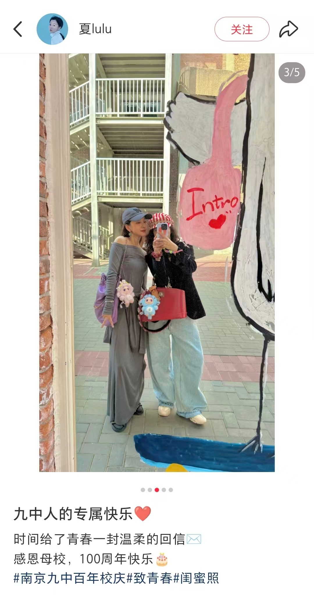 【倪妮夏露同学合影】倪妮夏露南京九中校友 假期第二天,马龙妻子夏露在社交平台晒出了与同学的合影,之前一个时尚晚宴中,倪妮曾透露,自己和夏露是同学,刚通过马龙加上了夏露的微信,以后可以一起聚!马龙还因为嘴瓢演了个小剧场:“替我姥姥(?)sorry,替我老婆谢谢倪妮!”