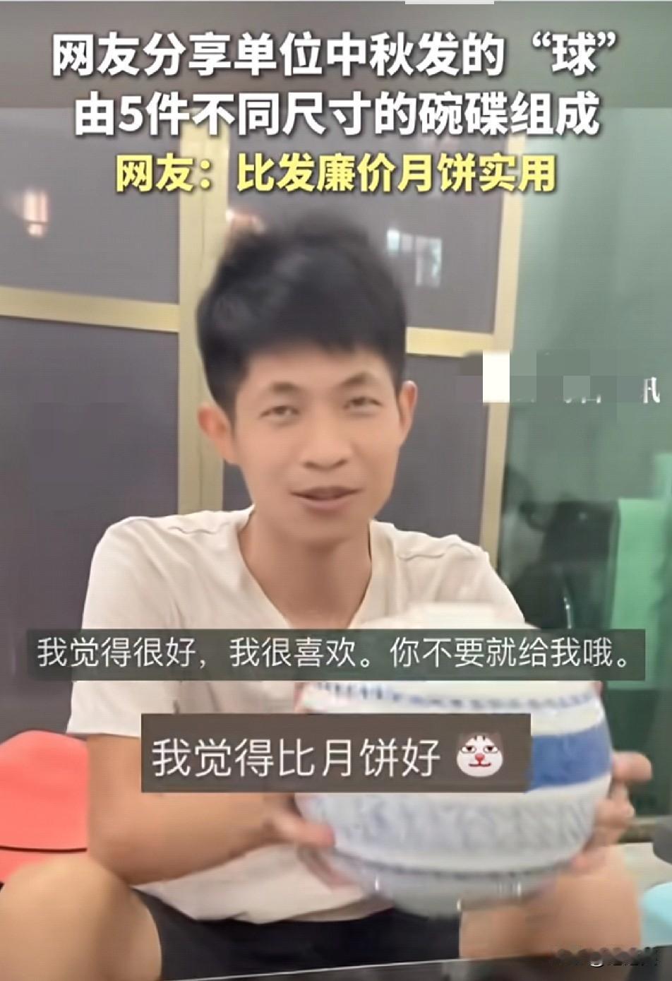 笑不活了 今年中秋这单位福利绝绝子 一网友晒出单位发的中秋礼,是个由5件碗碟