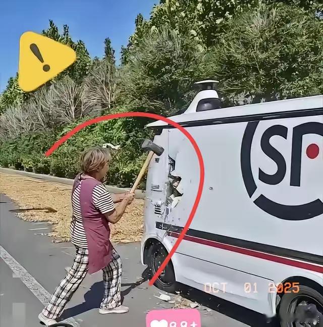 无人驾驶车压了大妈的花生,大妈怒砸车——这哪是赔钱的事,分明是科技撞了“人情墙”!