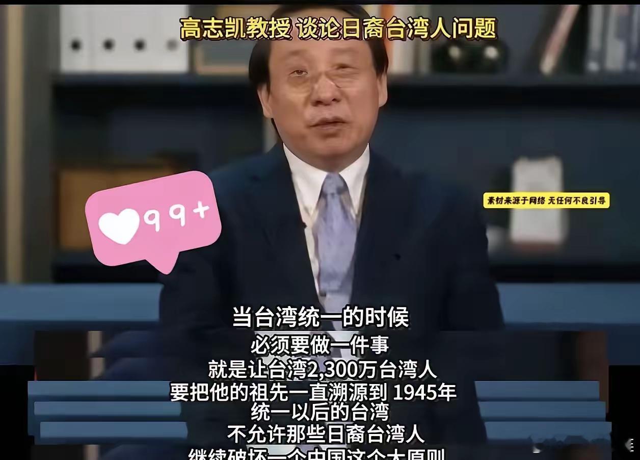 高志凯先生日前又有新提议,台湾统一后,对2300万台湾同胞要进行溯源,一直统计到1945年。