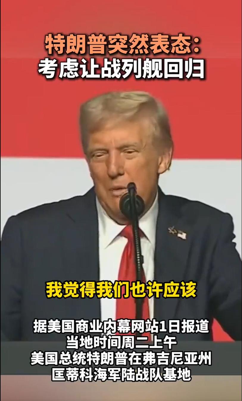 特朗普突然表态:考虑让战列舰回归 据美国商业内幕网站1日报道,当地时间周二上午,美国总统特朗普在弗吉尼亚州匡蒂科海军陆战队基地对美国高级将领发表讲话时表示,他正在考虑让战列舰回归美国海军。 讲话中,特朗普还动情地提到了退役的衣阿华号战列舰以及1954年的第二次世界大战海战纪录片《海上的胜利》。 就说和衣阿华级同属一个时代的密苏里号,1945 年 9 月 2 日就在东京湾签了日本投降书,那时候这大家伙确实威风,16 英寸的主炮一开火,能把几吨重的炮弹砸到几十公里外,装甲厚得能扛住普通鱼雷的打击。可风光归风光,这都是快一百年前的事儿了,就像咱们当年用的老收音机,再经典也没法跟现在的智能手机比。 特朗普怕是忘了,衣阿华级早在上世纪 90 年代就全退役了,不是美国海军败家,是这船实在跟不上趟了。先说最核心的战斗力,战列舰靠的是大口径主炮,可那玩意儿射程顶天了也就 40 公里左右。 现在随便一艘驱逐舰装的反舰导弹,比如美国自己的鱼叉导弹,射程都能到 130 公里,中国的鹰击 - 18 更是能打几百公里。这就好比俩人打架,人家站在百米外扔飞刀,你还举着大砍刀往前冲,没等靠近就被撂倒了,这仗怎么打? 再说防护能力,别以为战列舰装甲厚就扛揍。现代反舰导弹根本不是靠硬碰硬击穿装甲,而是靠爆炸产生的冲击波和碎片毁伤设备、杀伤人员。 美国海军曾经用退役的战列舰做过试验,一枚现代反舰导弹就能炸得它动力全失,要是挨上两三枚,就算不沉也彻底失去战斗力了。 当年英阿马岛战争,英国的谢菲尔德号驱逐舰,装甲比战列舰薄多了,但被一枚飞鱼导弹就击沉了,要是换了衣阿华号,目标那么大,导弹更容易打中,死得更惨。 不仅如此,成本更是个大窟窿,这可不是小数目。上世纪 80 年代美国给衣阿华级做过一次现代化改装,每艘就花了三四亿美元,那时候的三四亿相当于现在的十几亿。 而且这船吃得多用得多,一艘衣阿华级得配两三千名舰员,每天的吃喝拉撒、设备维护都是钱。你看现在的阿利・伯克级驱逐舰,排水量快万吨了,才需要三百来个舰员,一年运行成本也就 8100 万美元。 就连那艘 3000 吨的濒海战斗舰,一年运行成本 7000 万美元,跟战列舰比起来简直是小钱。特朗普要是真把战列舰拉回来,光养着就得拖垮海军预算,这不是脑子发热是什么? 更关键的是,现在的海战早就不是战列舰能适应的了。二战那会儿是舰炮对轰、舰队排队交手,现在是立体作战,天上有卫星、无人机侦查,海上有导弹远程打击,水下有潜艇偷袭。 战列舰那两三百米长的身子骨,在雷达上就是个明晃晃的大目标,躲都躲不开。美国海军现在讲究 “分布式海上作战”,就是要把舰艇分散部署,不让敌人一锅端,战列舰这么个大家伙,正好跟这个战略对着干,简直是送上门的靶子。 其实早几年就有人提过让衣阿华级回归,台媒 2017 年就报道过这事儿,当时美国海军自己都觉得可能性不大。 为啥?因为就算花大价钱改装,给它装雷达、装导弹,它的底子还是老的,船身结构、动力系统都跟不上现代节奏。就像给老自行车装个电动车电机,看着能跑,可刹车、车架都不行,一快就容易散架。 特朗普提这事儿,说白了就是玩情怀,跟他搞 “新炮舰外交” 一个路子,看着强硬,其实没实在东西。他念叨《海上的胜利》,怀念衣阿华号的辉煌,无非是想勾起美国人的怀旧情绪,显得自己重视军事、能撑场面。可军事这东西来不得半点虚的,不是靠老电影、老军舰就能撑起来的。 当年海湾战争的时候,美国还用过衣阿华级打岸上目标,可那都是凑数,打完就赶紧退役了,因为实在不如导弹好用,炮弹打出去精度差,还得冒着被反击的风险靠近岸边,远不如在几百公里外发射巡航导弹来得安全精准。 现在全球海军都在往小型化、信息化、隐身化发展,连美国自己都在造更小更灵活的舰艇,特朗普反倒想把几十年前的老古董拉回来,这不是开倒车吗? 说白了,这提议就是个政治噱头,根本没考虑实际战斗力和成本,真要实施,美国海军首先就得跳出来反对。 咱们这些普通人都能想明白的事儿,那些高级将领心里更清楚,战列舰回归也就是说说罢了,不可能真成事儿。特朗普也就是借着老军舰的名气喊喊口号,真要让他掏银子、担风险,他肯定比谁都含糊。