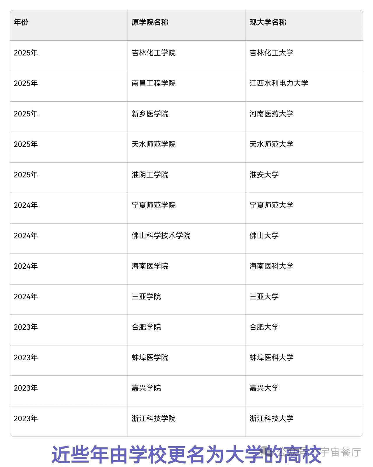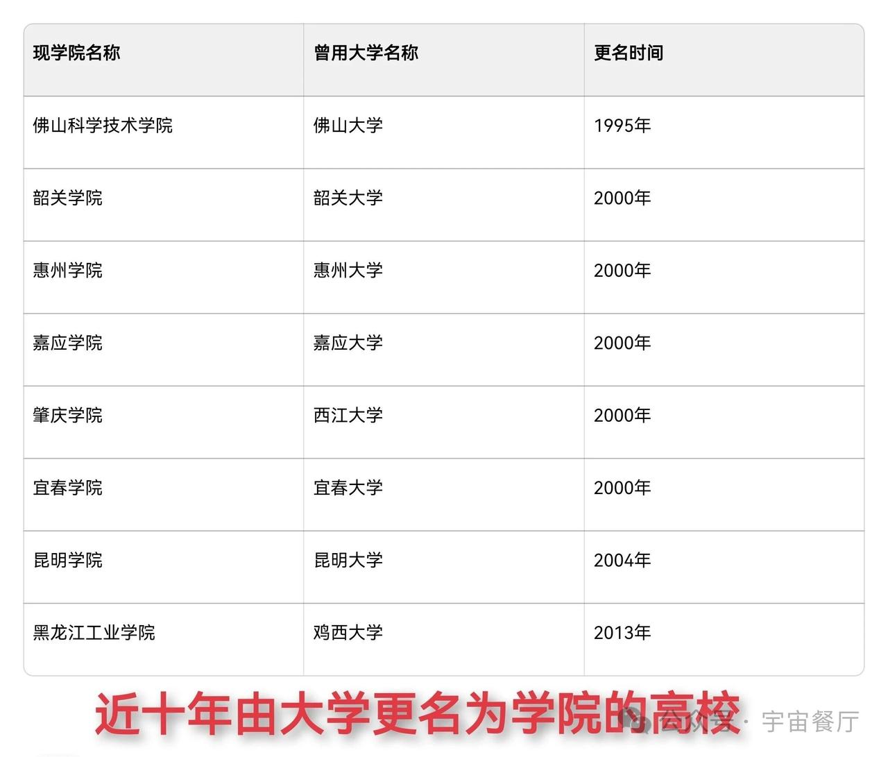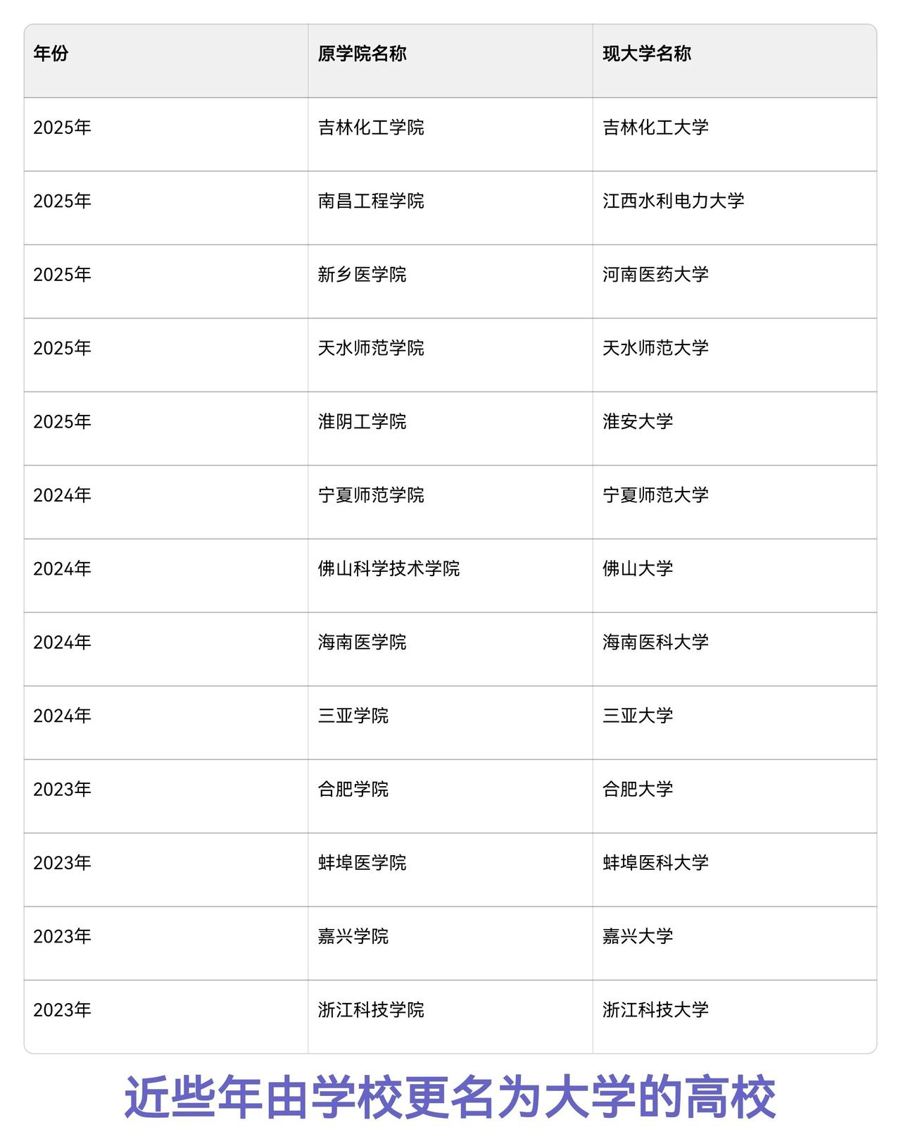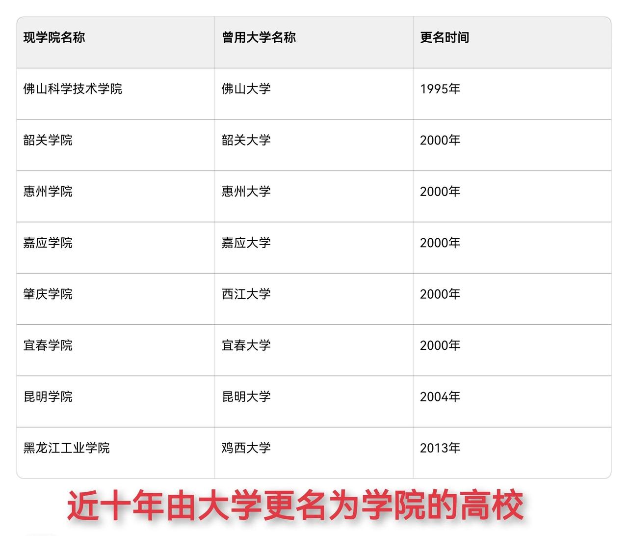 仍旧叫“学院”的本科大学 到目前,全国有将近三千所普通高等学校,本科院校超过1300所(到2025年六月底是1365所)。近些年来好多高校都“升档”或更名为大学了。根据公开资料显示尚有超过百所本科院校名字仍是“学院”。 不过,这其中,可有一些实力很强的院校。在其特色领域方面非常的厉害。有9所在第二轮双一流评选都因实力强、建设好而入选(有的近年也更名为大学了) 有从学院更名为大学的。竟还有几所院校名字从大学改为了学院。当然,这并不是高校主动愿意更改的,而主要是因为曾经它们是“大学”名头的时候还是专科院校(主要是历史原因就保持着大学名字),后来升格为本科时,根据教育部对“大学”名字对应的标准要求和规范,就更名为“学院了。如韶关学院、惠州学院、肇庆学院等高校在更名前虽名为“大学”,但实际就是是专科院校。