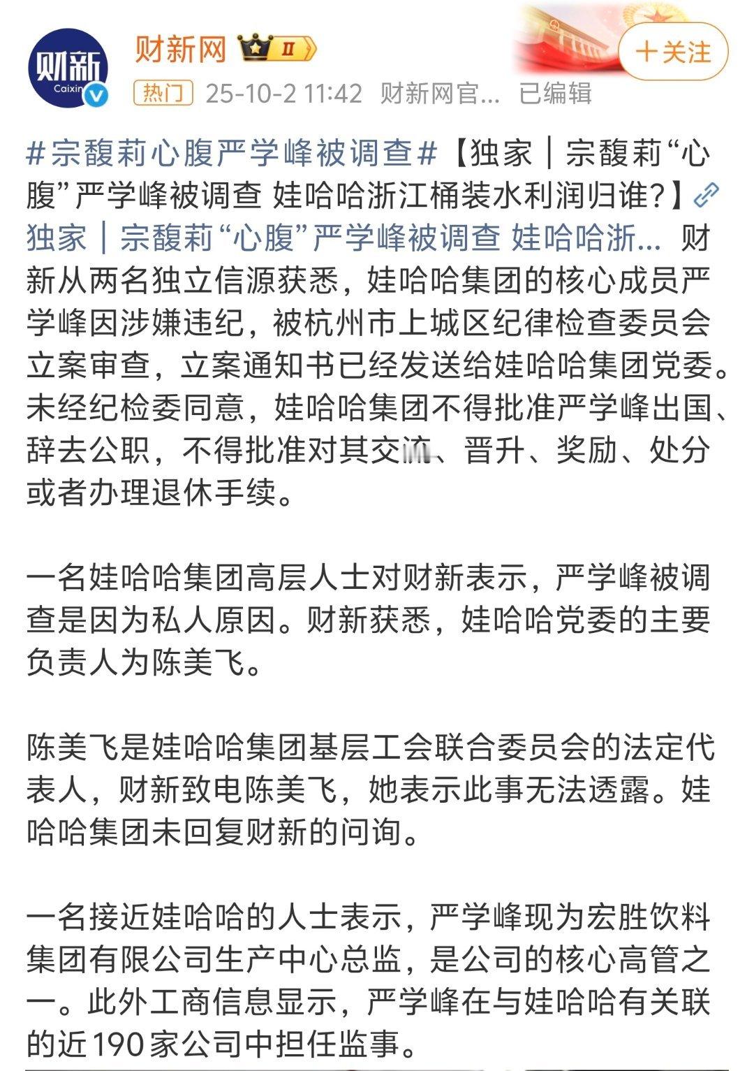 前面都是宗馥莉在搞动作,现在国资也开始反击了,不能直接打你宗馥莉,还不能打你的心腹吗?