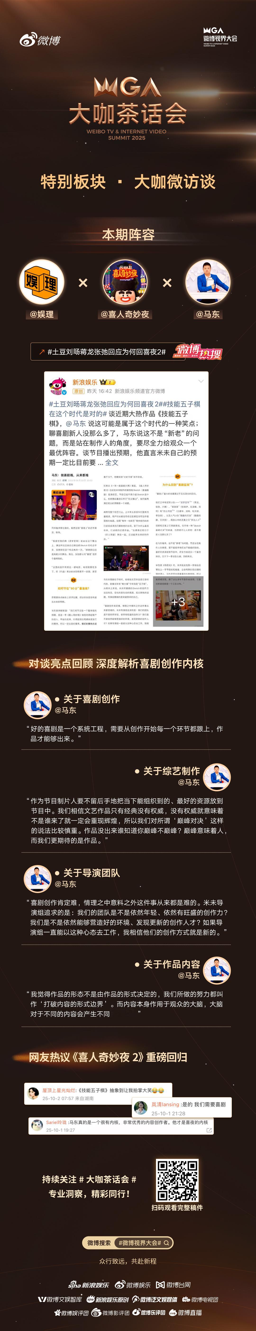 谈及喜人奇妙夜《技能五子棋》的破圈笑点,坦言这恰是时代情绪的独特共鸣。面对喜剧演员的阵容,他指出核心不在“新老”而在制作人能否倾尽最优资源。关于创作,他强调“好的喜剧是系统工程”,而米未导演组始终以年轻创作力突破内容边界。戳图收获更多关于喜剧创作的硬核洞察!微博视界大会