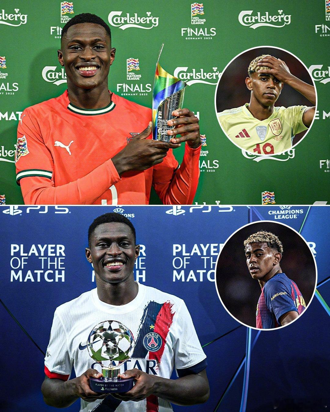 【23岁的门德斯VS18岁的亚马尔】两人先后在欧国联决赛和欧冠联赛阶段碰面,两次都是门德斯所在的球队获胜,并且门德斯获得了全场最佳。