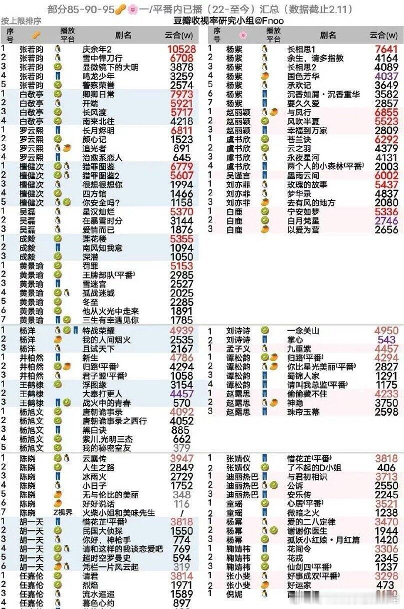内娱26位女明星主演热度破万剧集作为90后女演员中的扛剧代表,杨紫凭借多部现象级