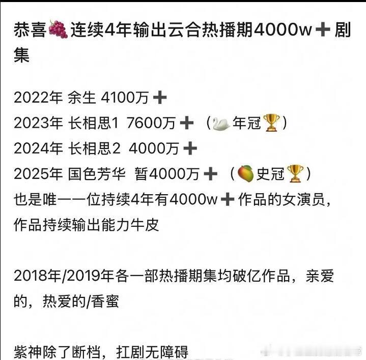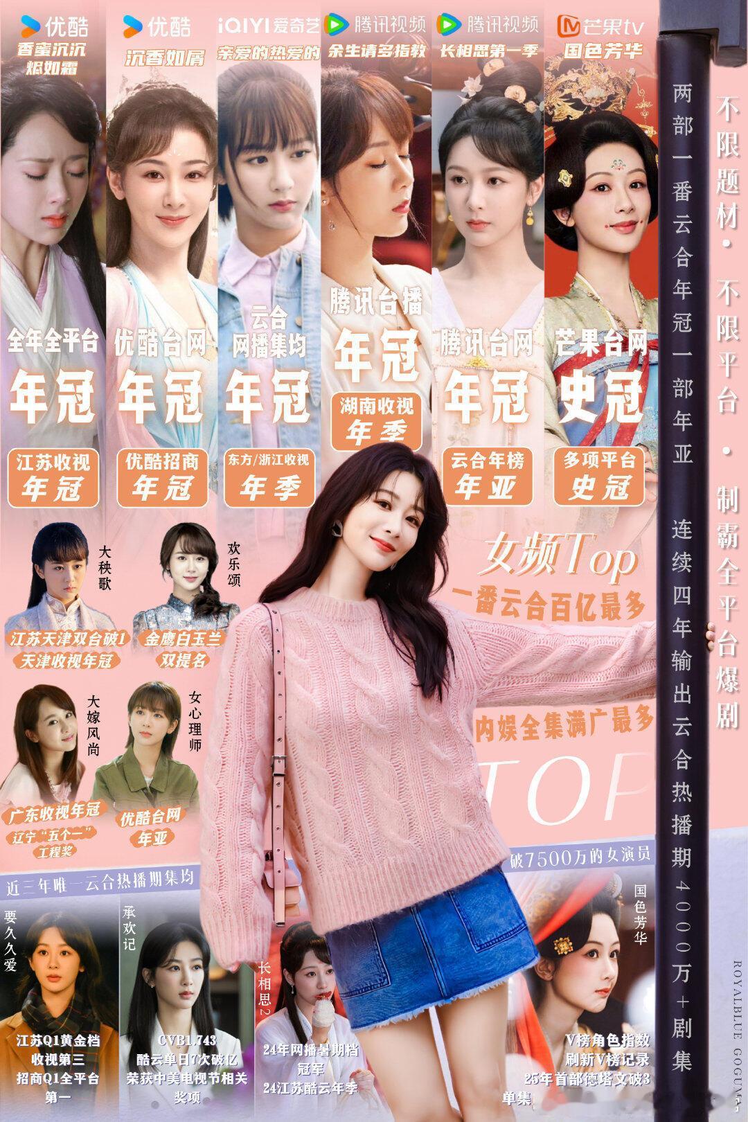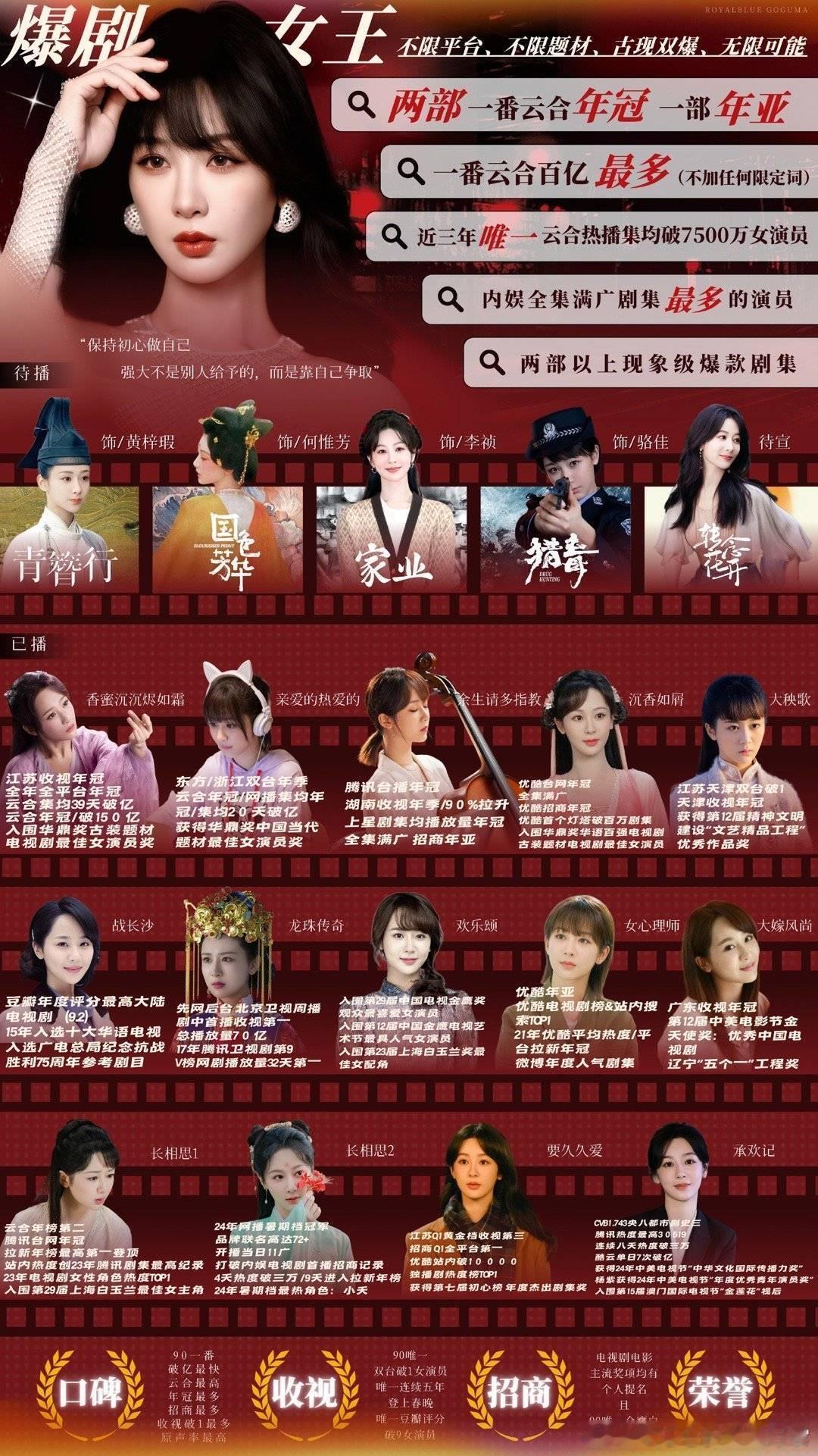 内娱26位女明星主演热度破万剧集作为90后女演员中的扛剧代表,杨紫凭借多部现象级爆款剧集和持续稳定的输出,堪称“女频第一人”。近六年唯一女频现偶、古偶、古装正剧均有爆剧的女演员。2019年现象级爆款剧《亲爱的热爱的》,至今无人打破记录。2023年古装仙侠《长相思1》是近五年唯一一部热播期破7600万的女频剧,在男频剧里杀出一条血路!