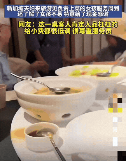 这老两口也明白,在中国,服务人员是不允许收小费的。于是特意把钱折得很小,假装握手偷偷塞进女孩的手里。女孩很感动。 我想,她感动的肯定不是因为拿到了小费,而是因为自己热情周到的服务得到了认可和尊重。 不管做什么行业,诚心待人、踏实做事,准没错!