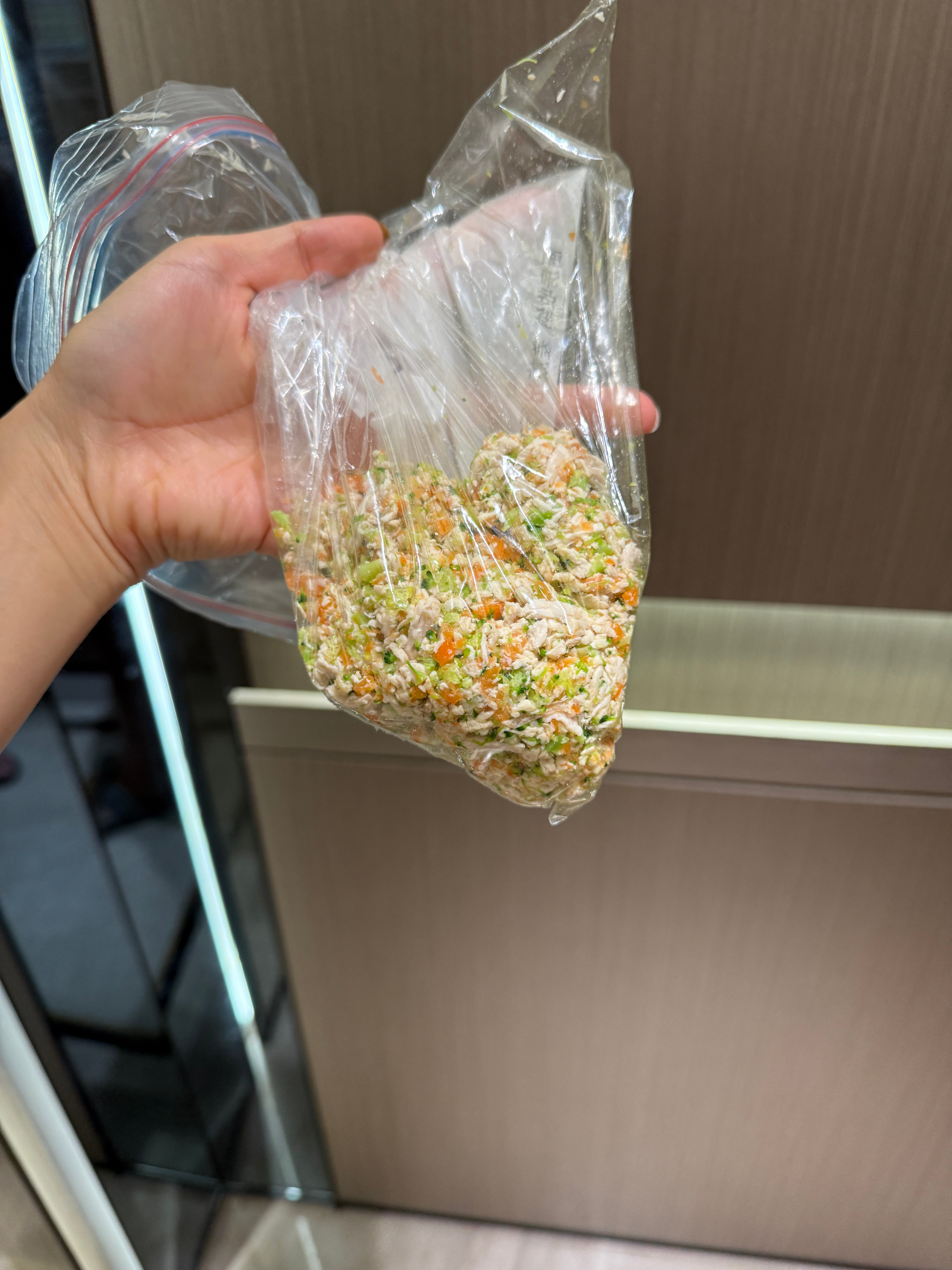 还把给拿铁做的饭剩了一点喂小区里的小猫了!