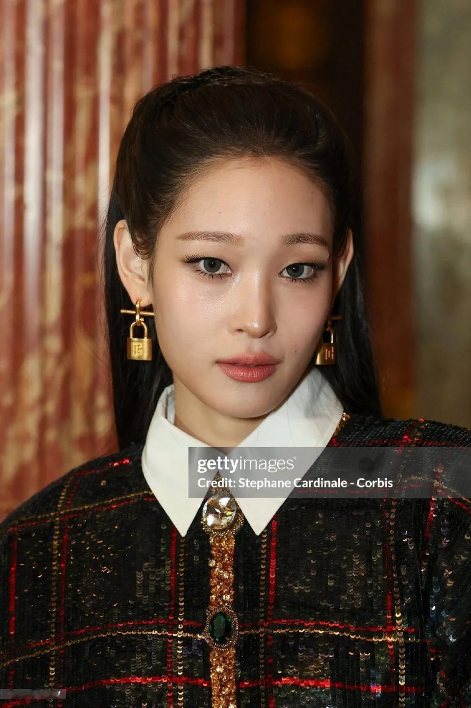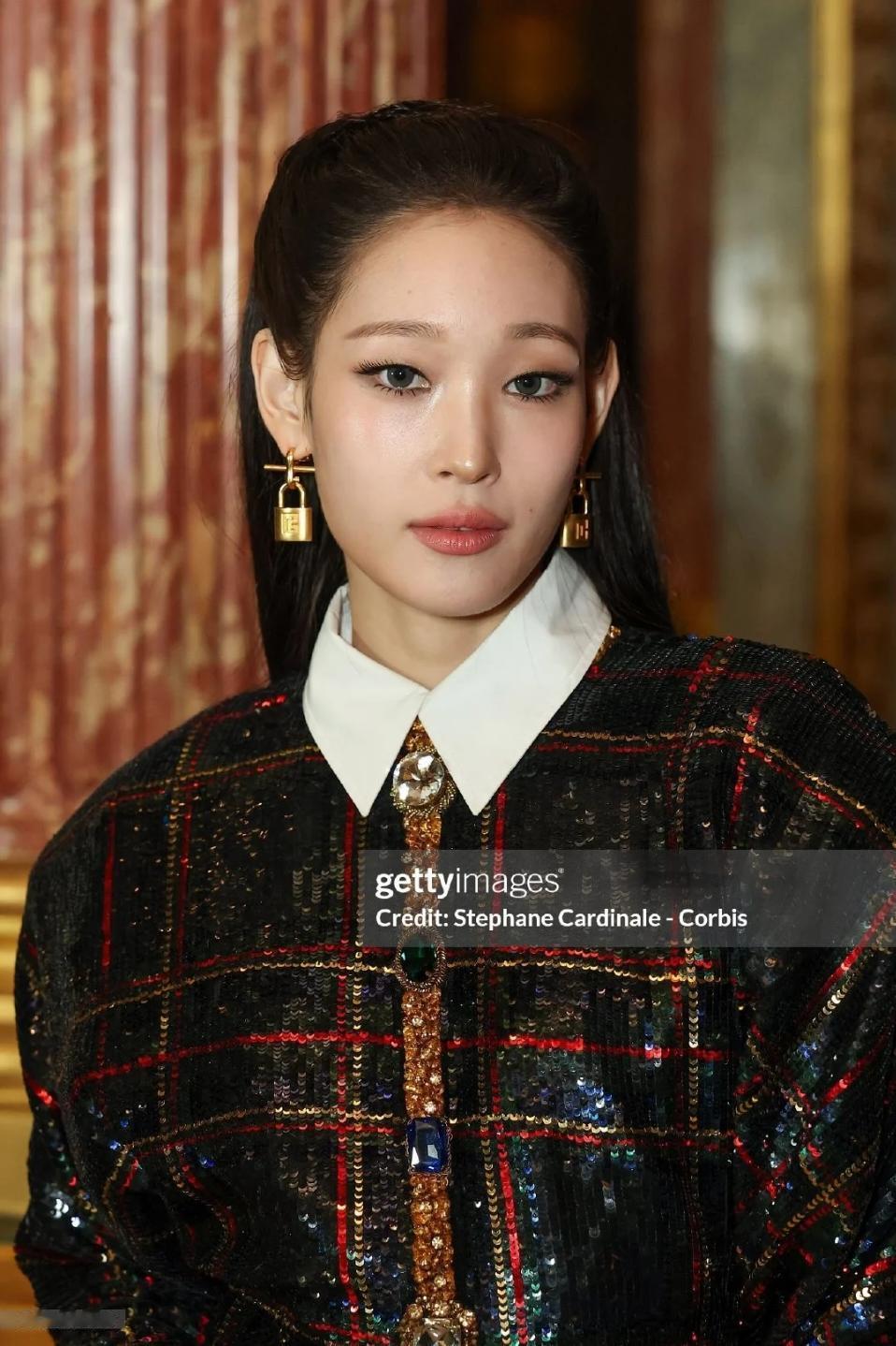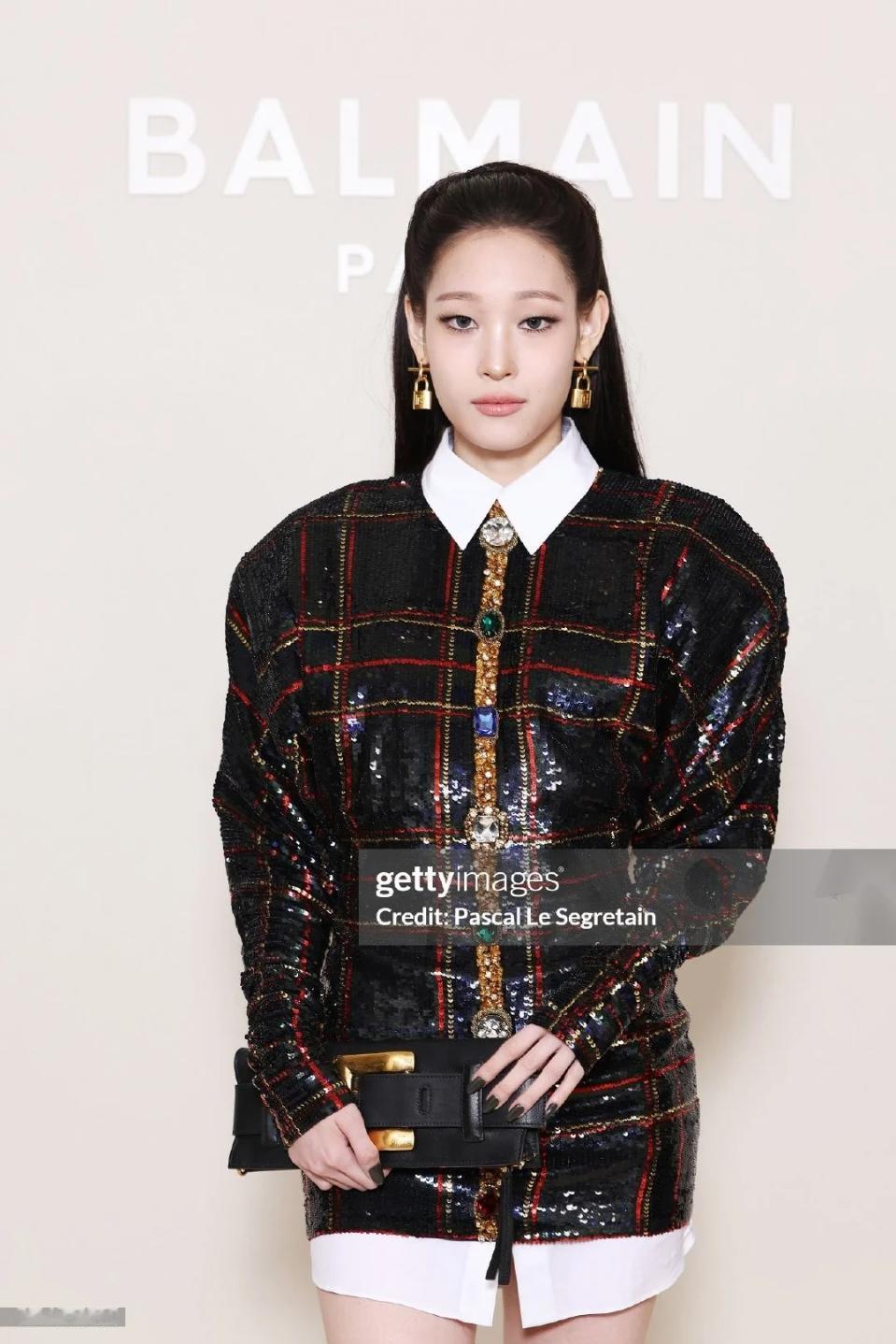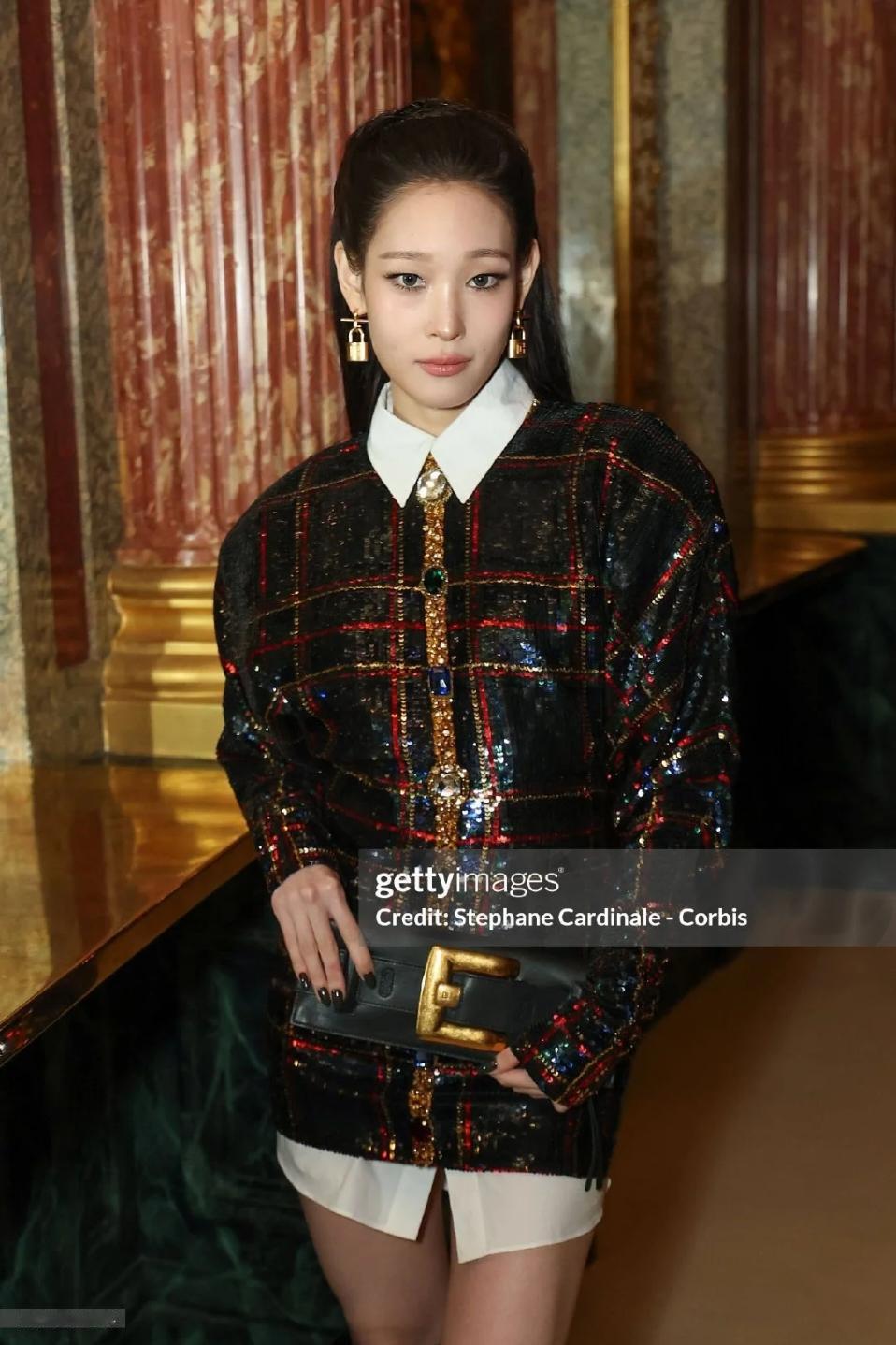 韩国女首富外孙女文徐允去巴黎看了Balmain大秀,她的耳环很特别,是一个锁的模样。 她穿得很贵气但人真的不漂亮,尤其是眼睛那块,眼型不好看、眼神还很空,看着很冷漠、没啥感情。 她长得还有点偏男相,这样的外形够出道,跟家里背景脱不了干系吧。