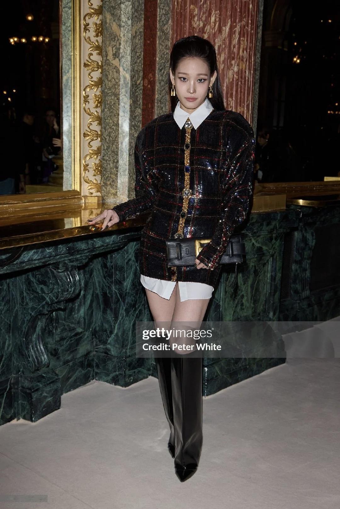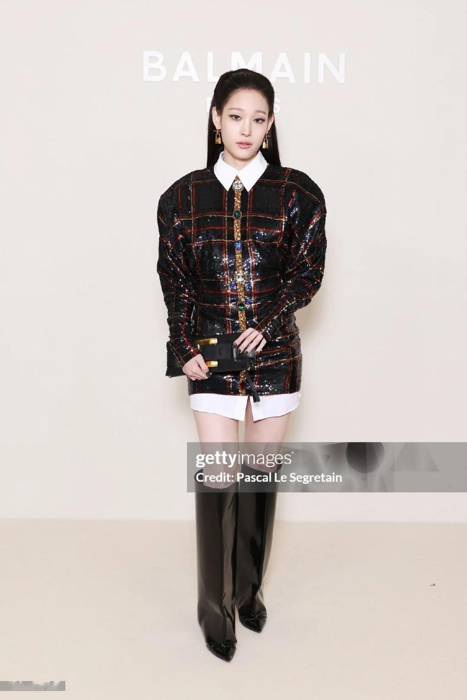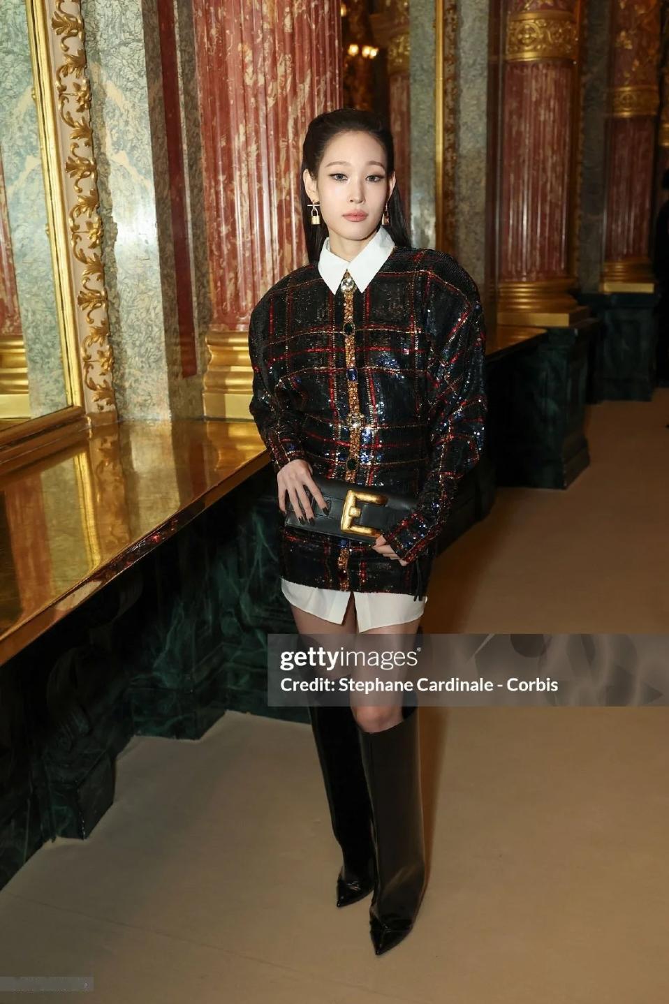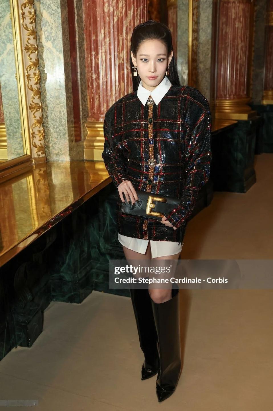 韩国女首富外孙女文徐允去巴黎看了Balmain大秀,她的耳环很特别,是一个锁的模样。 她穿得很贵气但人真的不漂亮,尤其是眼睛那块,眼型不好看、眼神还很空,看着很冷漠、没啥感情。 她长得还有点偏男相,这样的外形够出道,跟家里背景脱不了干系吧。