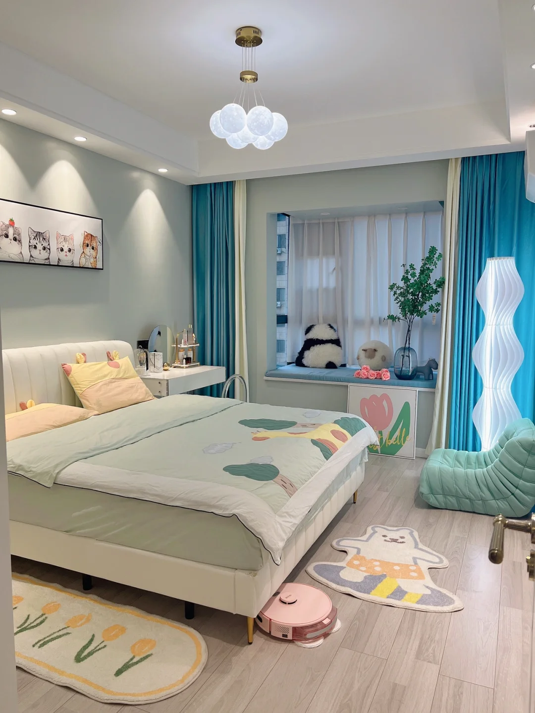 纯色乳胶漆,卧室和客厅统一刷的纯色乳胶漆,简单又不失温馨,我家九楼,晴天的时候,屋里亮堂的甚至有点晃眼,明亮的家里让心情都好