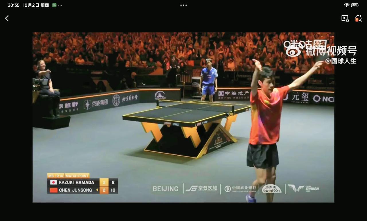 10月02日,王励勤关注的小将陈俊菘,闯进八强,相信这是王励勤在本次中国大满贯最大的收获,发现了一颗冉冉升起的未来之星,而且还是左手打法,实在稀罕之才啊 陈俊菘3:2滨田一辉,能闯进8强,这是许多人未曾想到的,首场比赛就爆出冷门,狂扫张本智和,说明陈俊菘是有能力的,在昨天对阵泊雷特,还吸引了王励勤和刘国梁到场观战,今天继续继续爆冷击败滨田一辉,赛后,也是激动万分,双手向观众加油,现场也是沸腾了,真是太厉害了,未来可期 五局比分是: 13:11,11:8,9:11,4:11,11:8