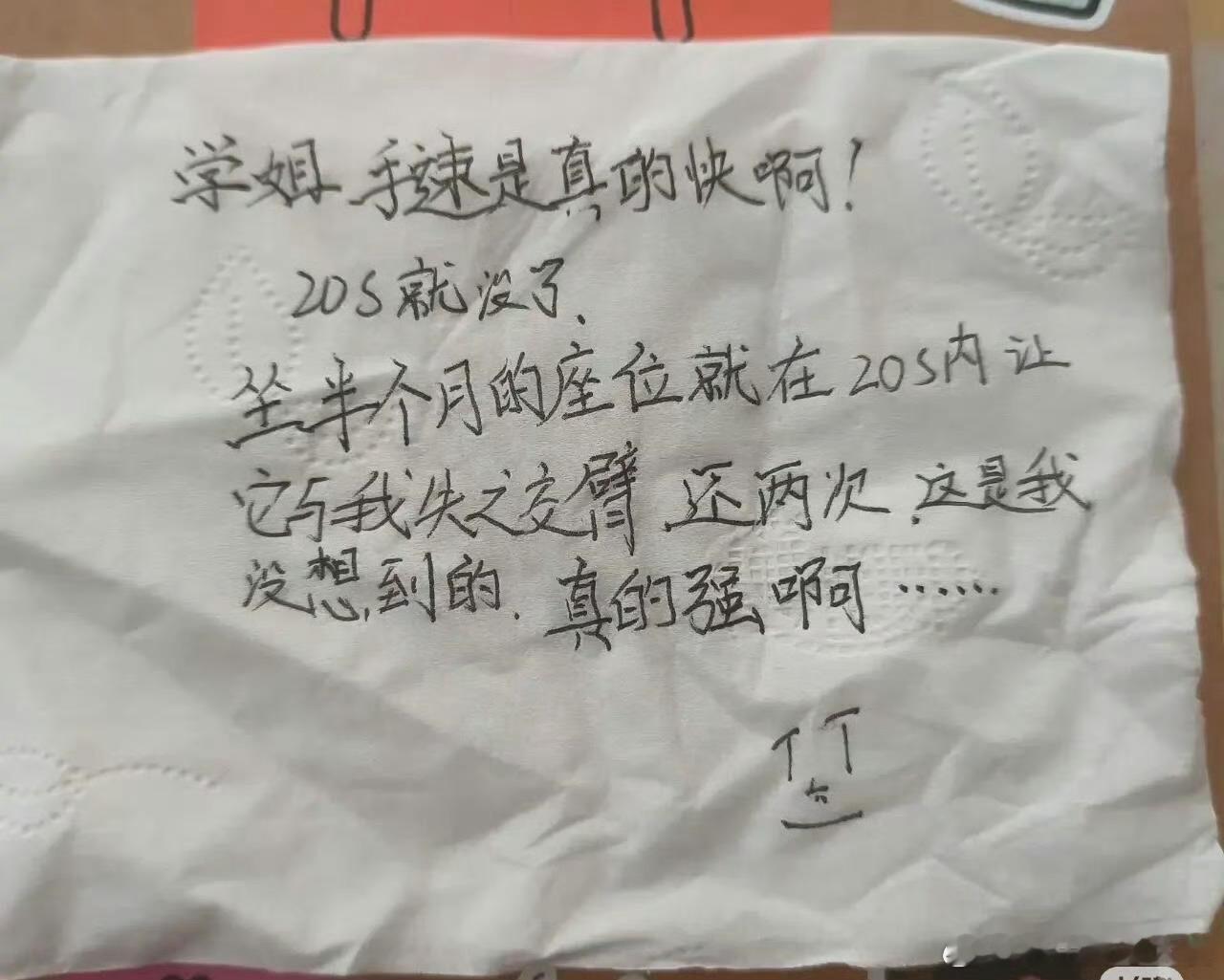 图书馆桌位上有人给我留了一张纸条