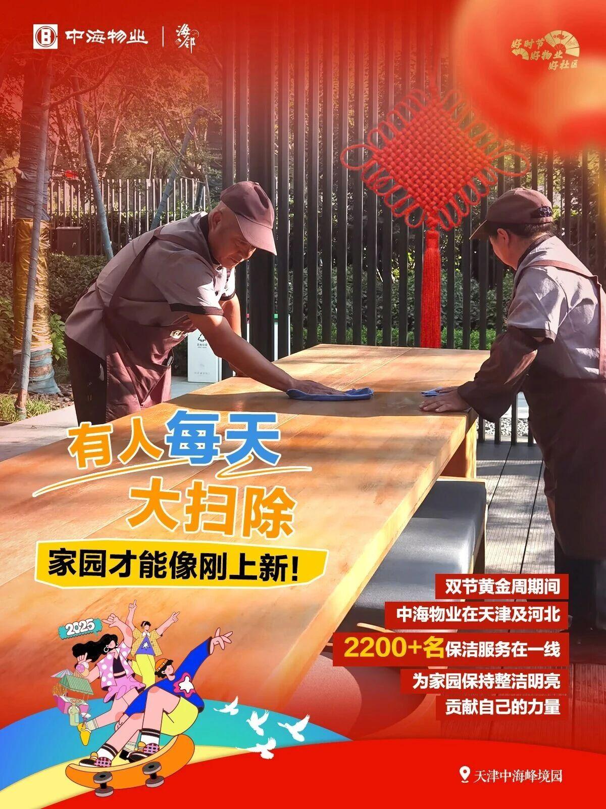 双节黄金周 服务全天候 秋风卷落叶,我执扫帚为笔 用双脚丈量园区洁净 用焕新姿态迎接双节盛景 让家园的每一步都有踏实的洁净 照片