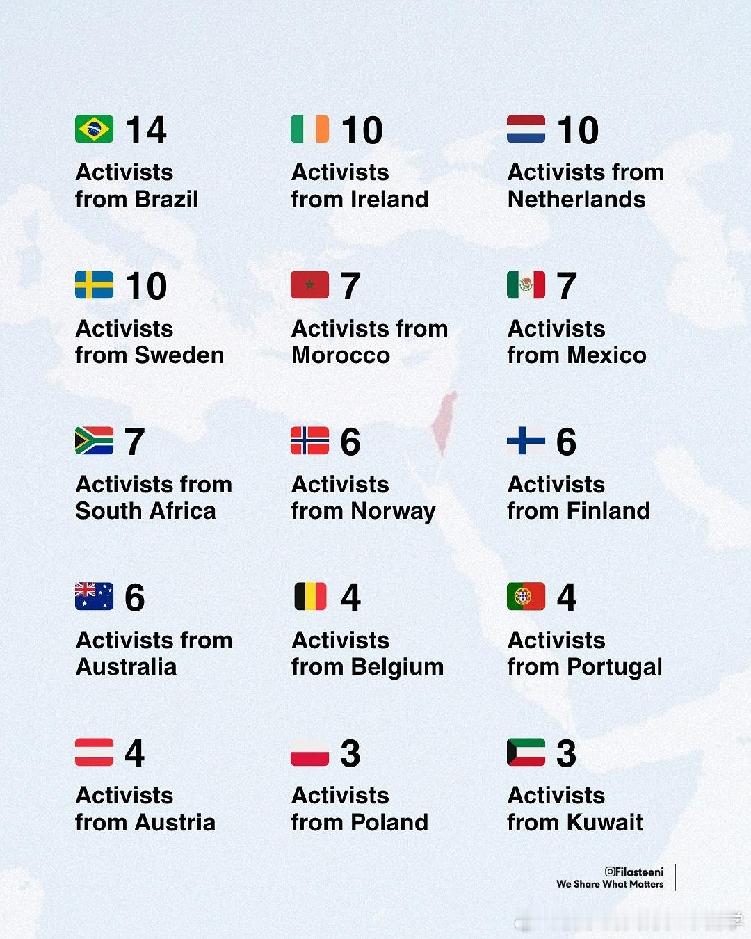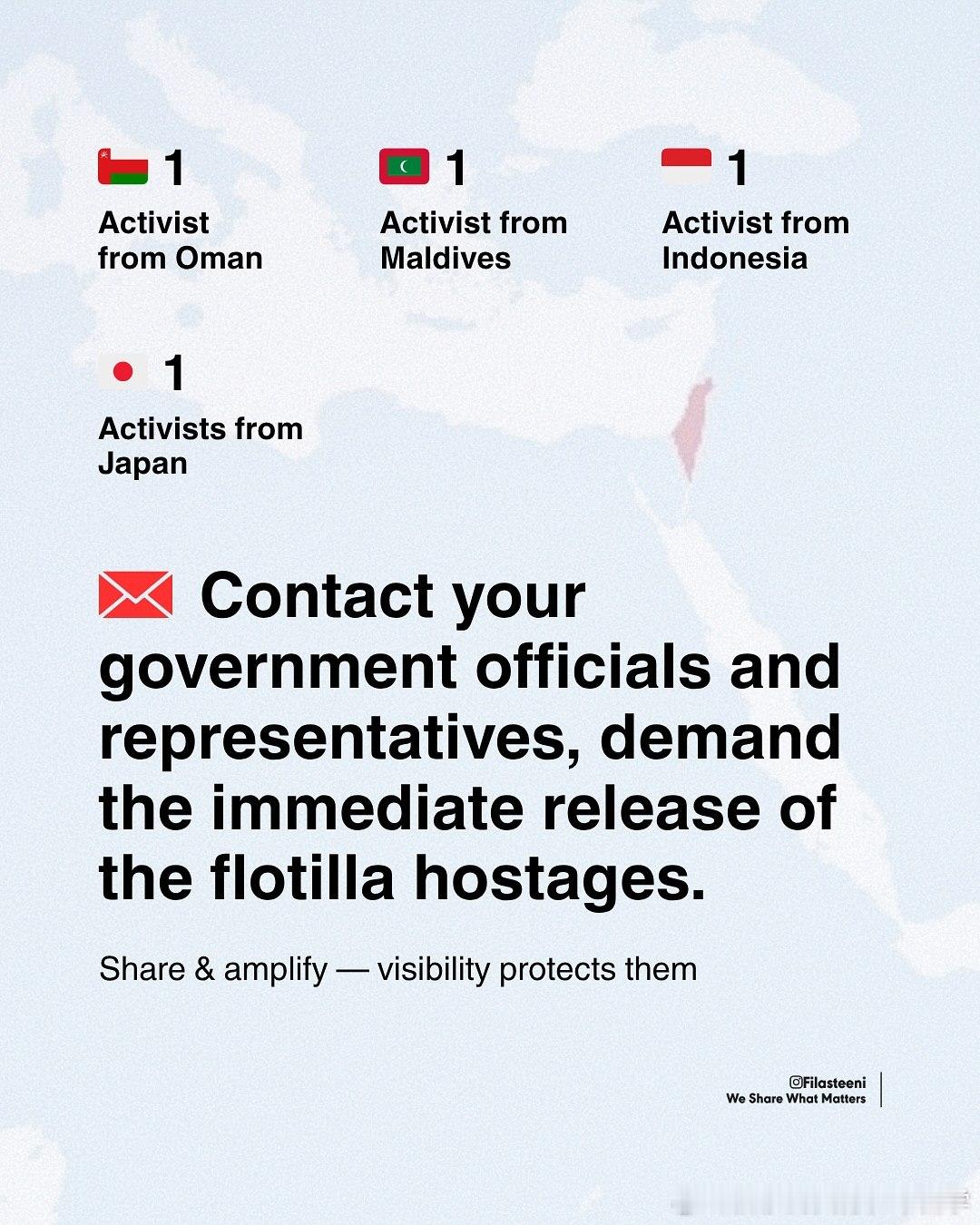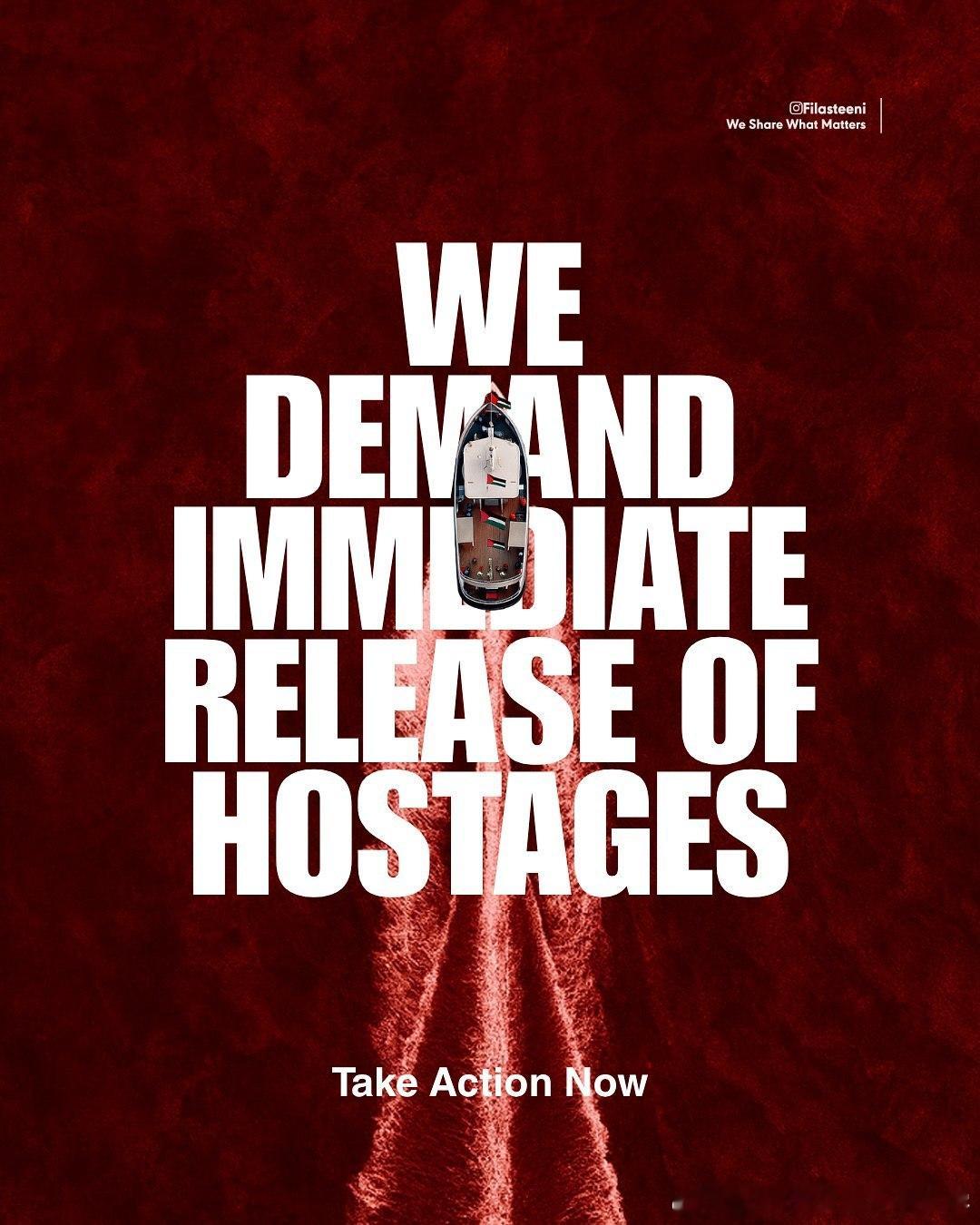 以色列正在国际水域一艘接一艘地扣押加沙救援船队。来自46个国家的近500名活动人士因为向饥饿的加沙运送食物和药品而被劫持。立即要求释放他们。