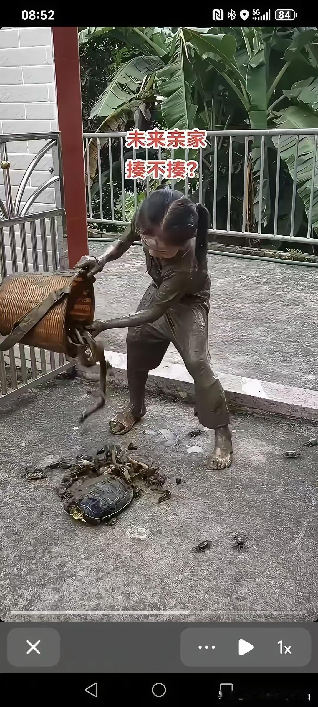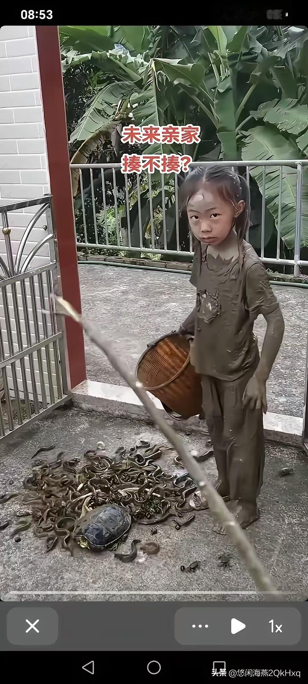 河沟里的“泥娃娃” 放暑假的午后,河沟边总蹲着个扎高马尾的小姑娘,七八岁的样子,裤脚卷到膝盖,袖子捋得老高。 她盯着水里的动静,小手猛地往泥里一插,要么摸出条扑腾的小鱼,要么抓着只横着跑的螃蟹。有时运气好,还能碰着缩成球的小甲鱼,她就轻手轻脚捧起来,眼睛亮得像星星。 每次回家,她都成了泥人——脸上挂着泥印,马尾梢沾着水草,衣服上全是泥点子,手里却紧紧攥着装鱼虾的小桶。她妈见了就叉着腰笑骂:“你看看你这模样!将来亲家见了,不得嫌你野,揍不揍你哟!”小姑娘一脸茫然,赶紧拎着竹背篓往屋里跑,还不忘回头喊:“明天我还去摸大螃蟹!”