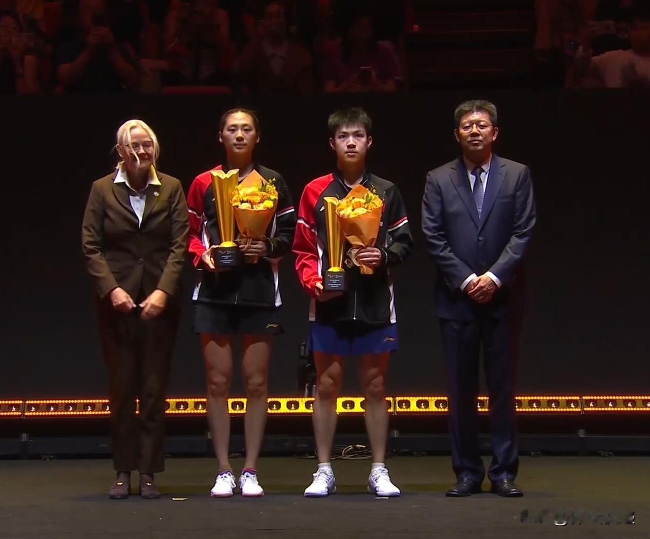 莎头组合捧得混双冠军归。在刚刚结束的WTT中国大满贯混双决赛中,孙颖莎王楚钦3:0战胜队友黄友政陈熠捧得混双冠军,黄友政陈熠夺得亚军。黄友政陈熠给莎头组合制造了足够麻烦,未来可期!!!恭喜四位中国选手!!!