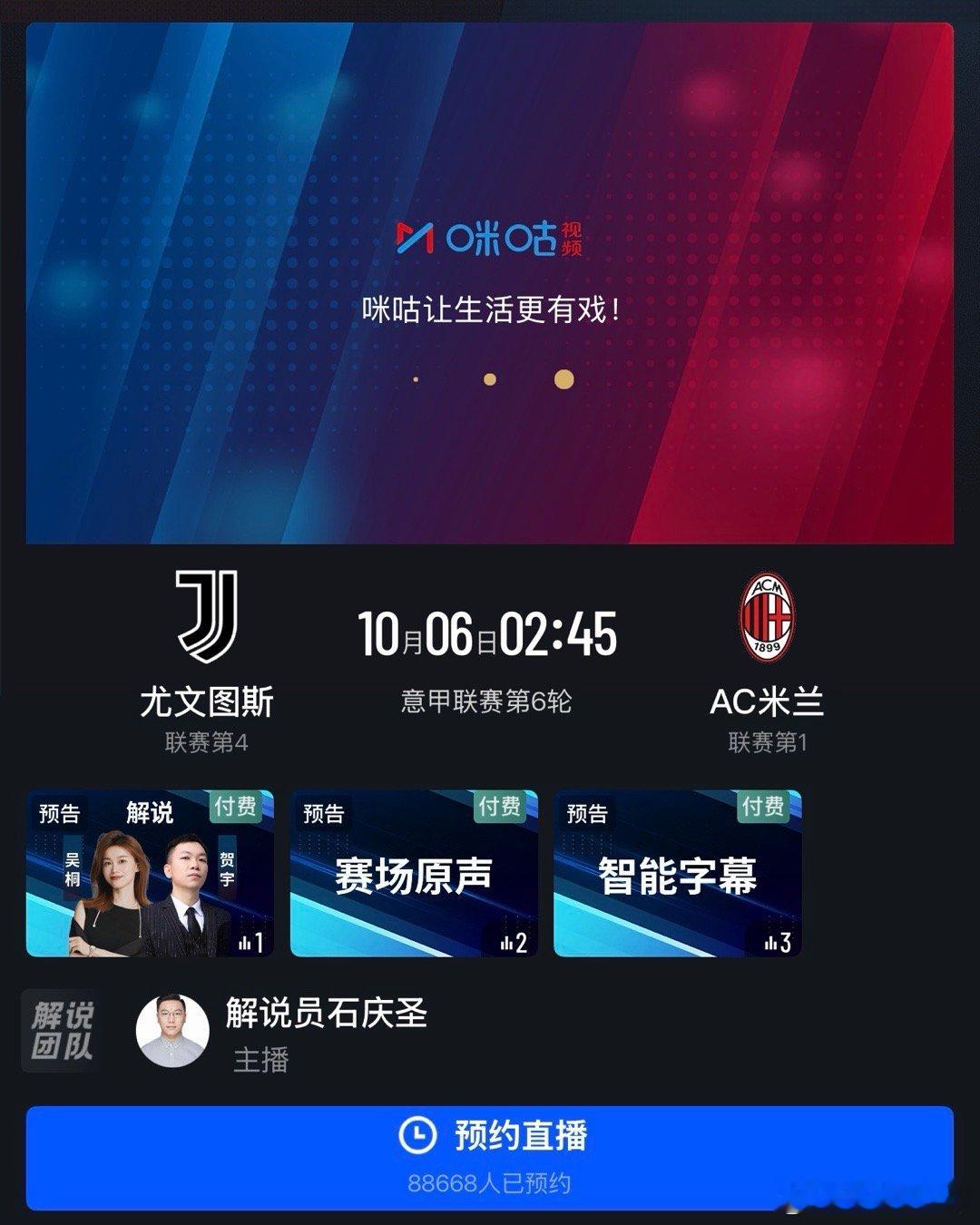 周日26:15意甲 尤文图斯vsAC米兰 搭档贺宇