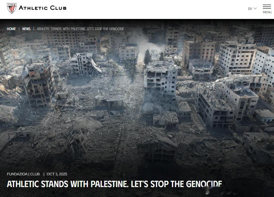 毕尔巴鄂竞技官网发文:与巴勒斯坦同在,让我们阻止种族灭绝。