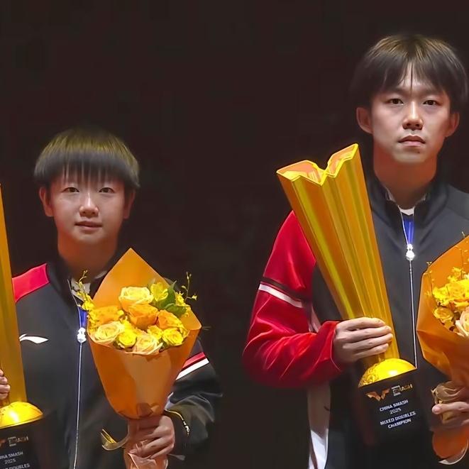 估计是奖杯太重,混双冠军自拍时,王楚钦主动拿过手机和莎莎拍。这点小事特显绅士风度。 俩人身形并肩,身高差刚刚好,灯光下看着特别搭。现场和屏幕前的观众,肯定都全程姨母笑,忍不住欢呼。 这是他们的第5个大满贯混双冠军,王楚钦身兼三项、孙颖莎两项,付出总算有回报。盼他俩之后再夺单打冠军,顶峰相见!