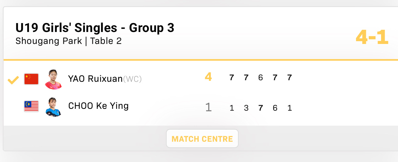 姚睿轩1-2胜周可莹 负赫尔希 小盐悠菜❌淘汰
