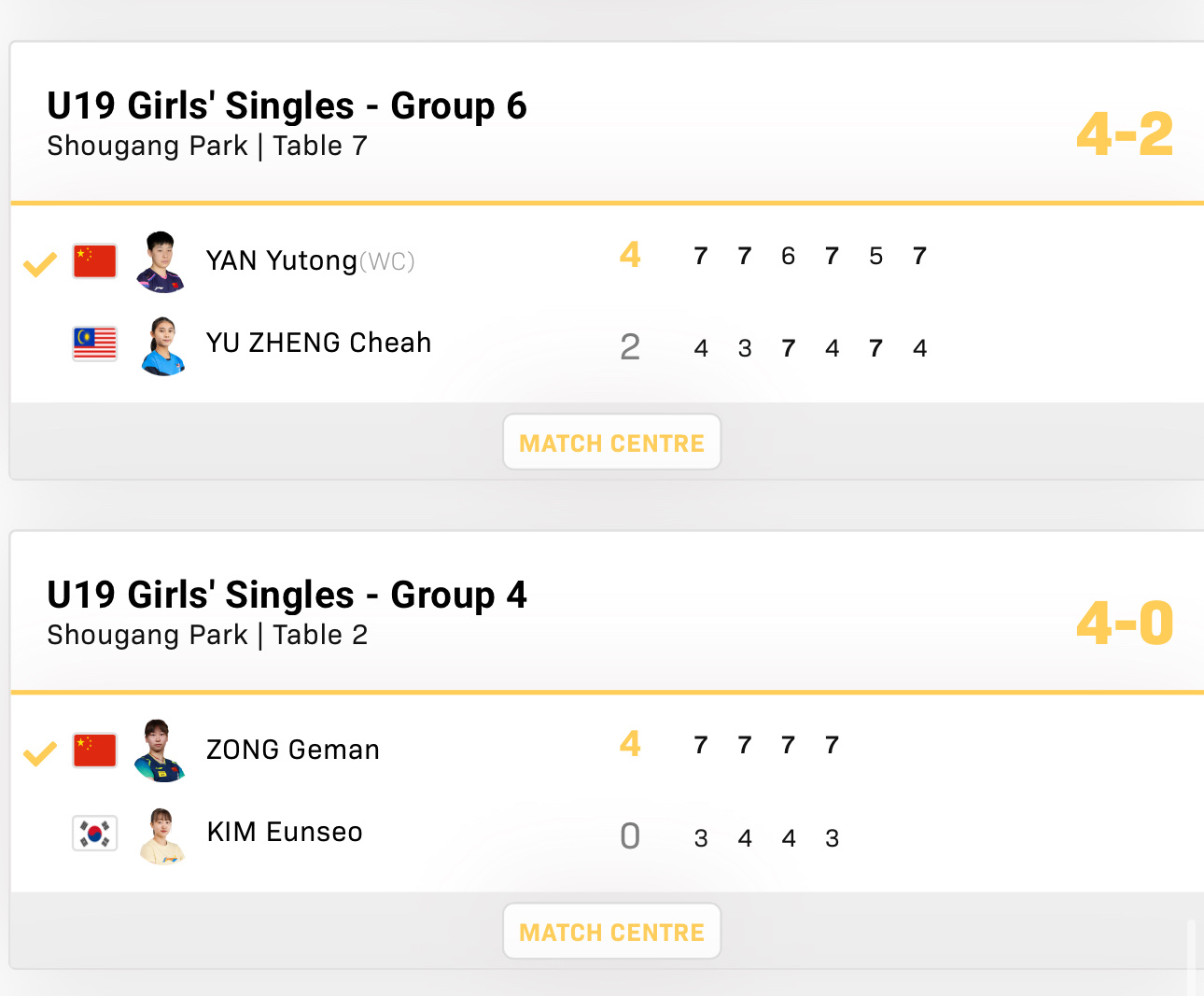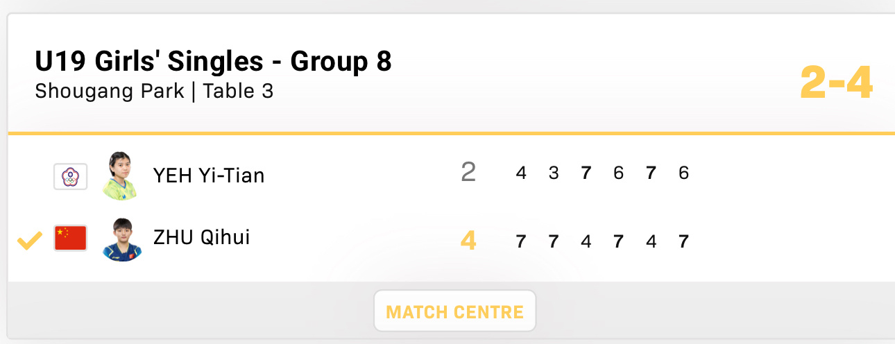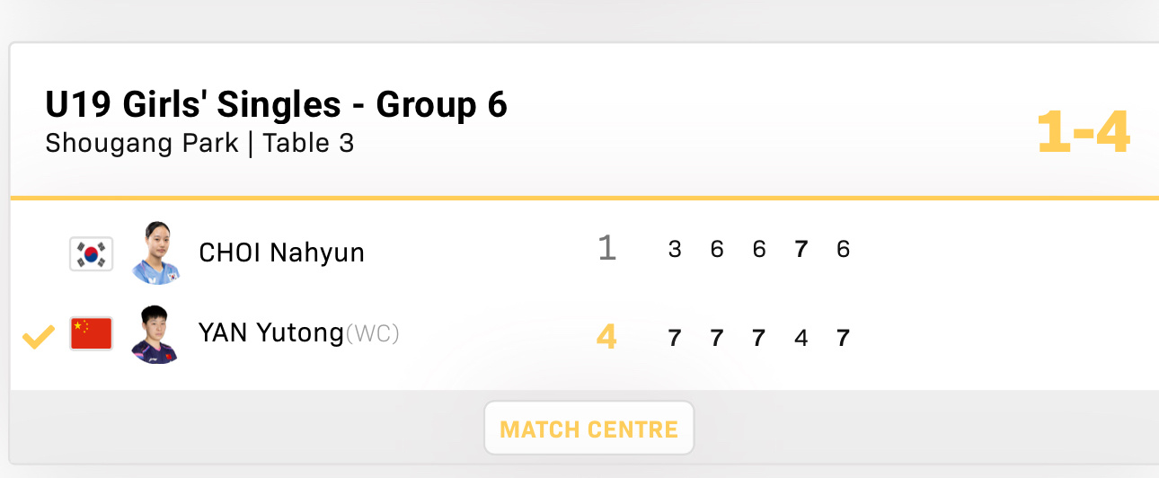 阎禹橦2-1 胜谢玉正 崔娜炫 负苏籽童⭕晋级