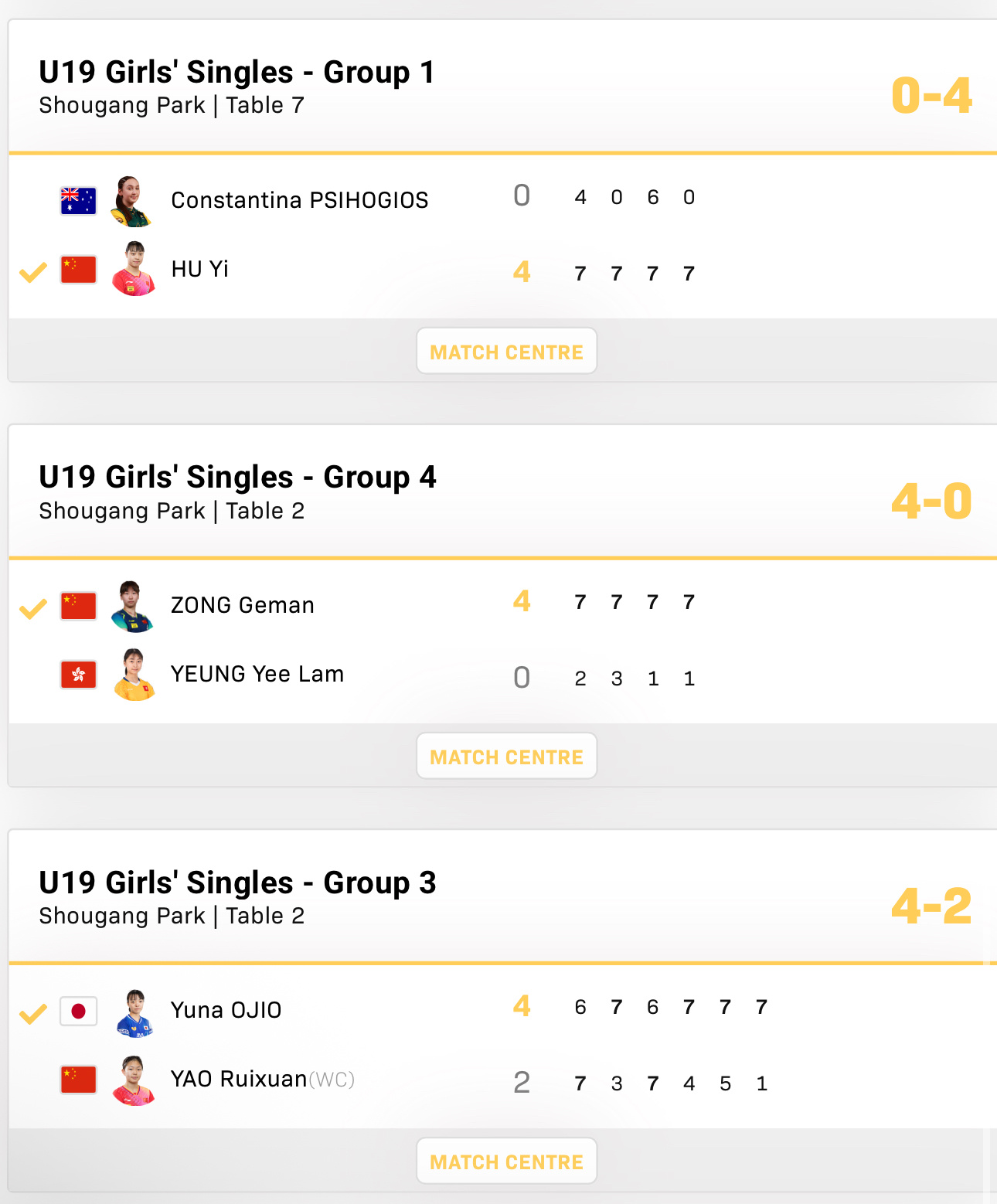 胡一 2-1 胜夏沁乐 康斯坦丁娜 负许玴玪⭕晋级