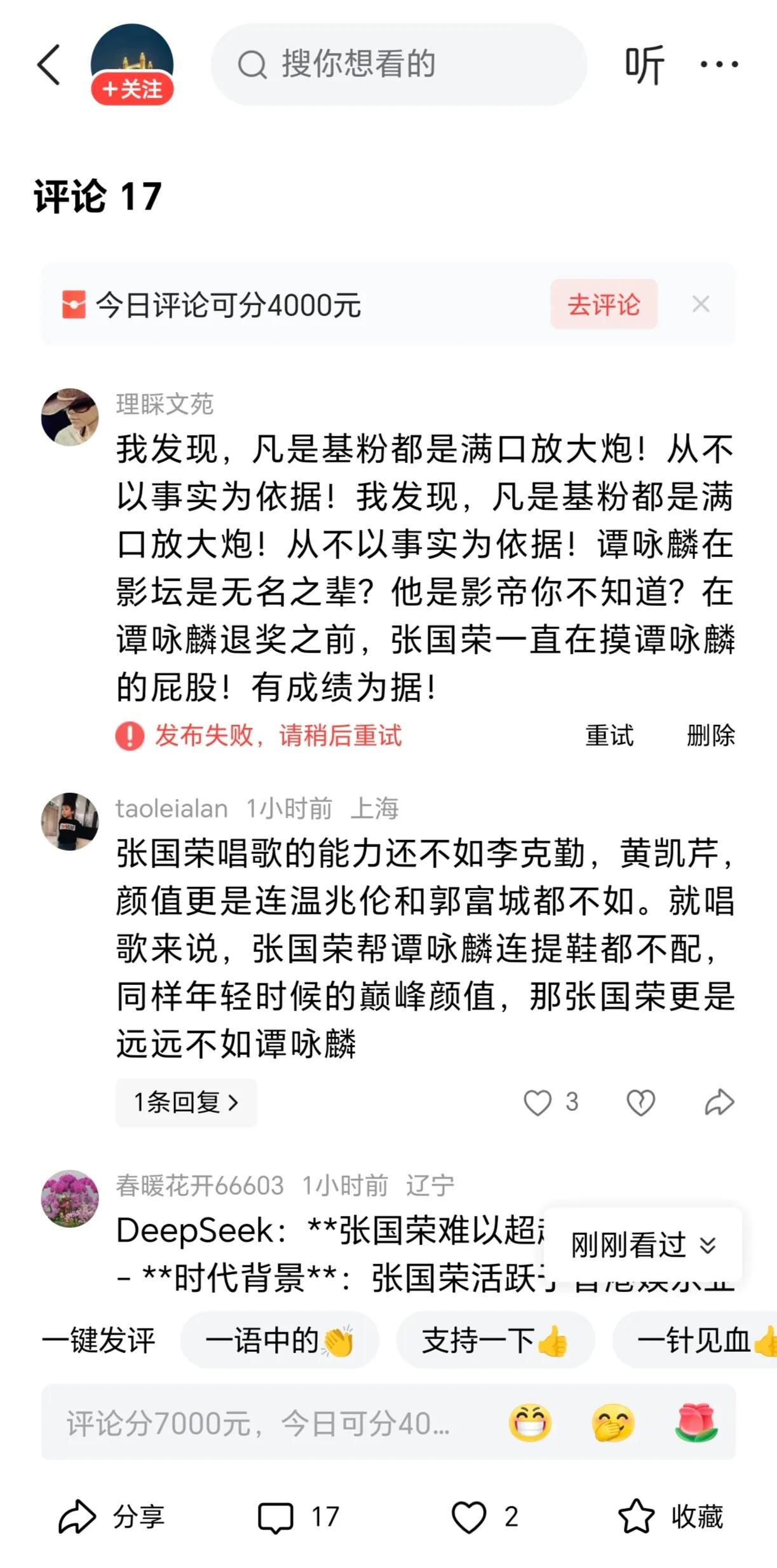 我曾经几次在一些张国荣粉丝评论区留言,都设限不让别人评论,为什么不让评论?无非是
