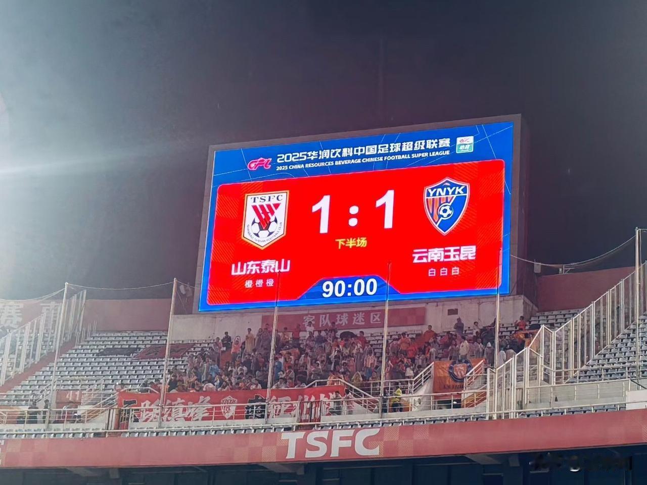 山东泰山队坐镇主场迎战云南玉昆,上半场第33分钟,云南队侯永永率先头球破门。下半场比赛,泰山队的李小恒头球扳平比分,双方战成1:1,泰山队迎来三连平。 另外,梅州客家1-0击败青岛海牛,积分榜上,梅州客家拿下保级关键3分,接连反超青岛海牛和深圳新鹏城,升至第13,青岛海牛跌入降级区。