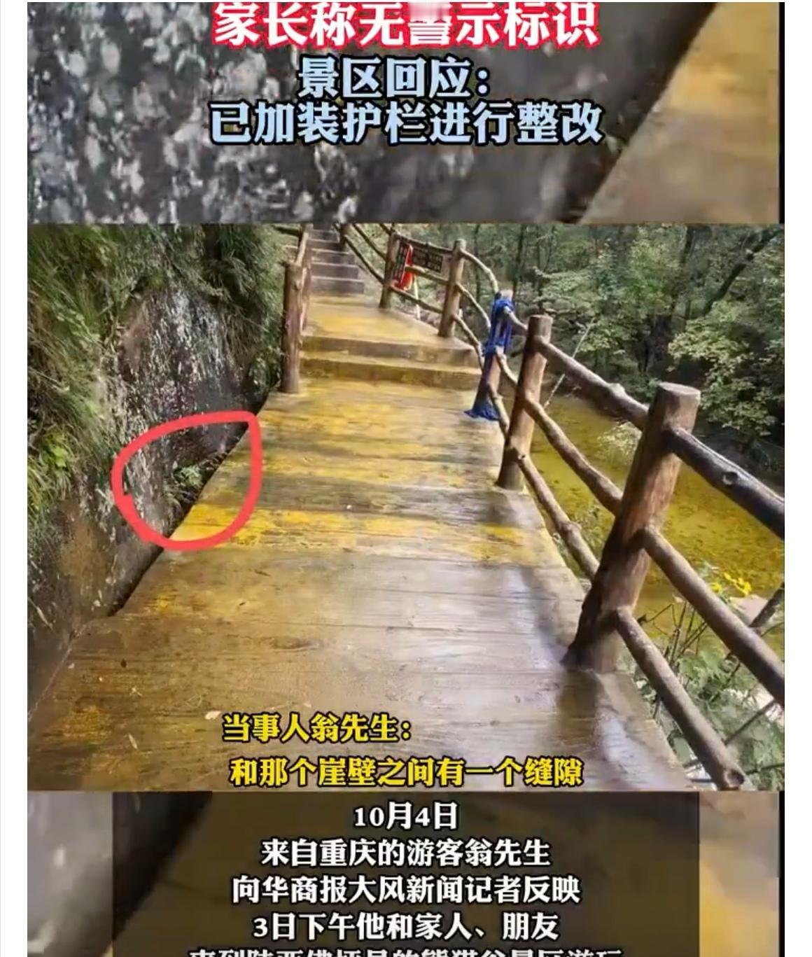3岁孩子从栈道缝隙坠落,景区却说“没发生过就不用设警示”——这哪是安全管理,分明是拿游客的命在赌! 栈道和崖壁之间的缝隙,对成年人或许不算威胁,但对蹒跚学步的孩子来说,就是隐形的陷阱。家长带着孩子进景区,图的是安心游玩,可景区连“幼童可能坠落”的风险都预判不到,一句“之前没出现过”就想推卸责任?这逻辑简直荒唐——难道非要等出了人命,才肯补上那道护栏? 万幸的是孩子只是擦伤,可后怕藏不住:如果缝隙再宽一点、落差再大一点,后果不堪设想。朋友能及时救下孩子,是侥幸,但安全不该依赖侥幸。景区作为管理者,对潜在风险的预判、警示和防护,是基本责任。栈道的设计是否符合安全规范?对不同年龄段游客的风险是否做过评估?这些问号,都该由景区来回答。 现在加装护栏是亡羊补牢,但责任不能不了了之。家长的疏忽或许有,但景区的安全漏洞才是根源。警方的调查不仅要查现场,更要追问:景区的安全巡查、风险评估制度到底有没有落到实处?别让“整改”成了敷衍的托词,毕竟,每个游客的安全感,都藏在那些没被忽视的细节里。
