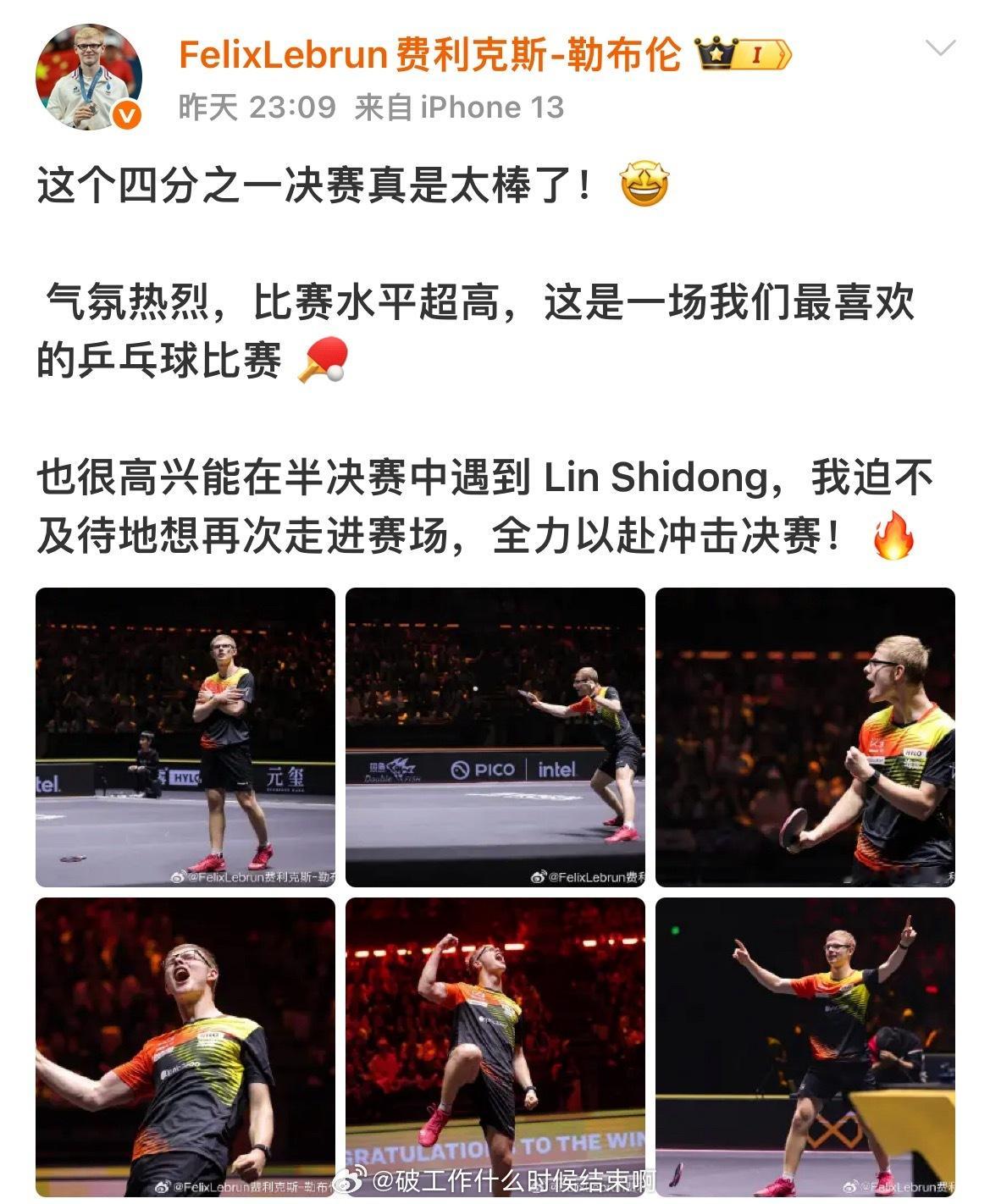 ✍️:也很高兴能在半决赛中遇到 Lin Shidong,我迫不及待地想再次走进赛场,全力以赴冲击决赛!🔥