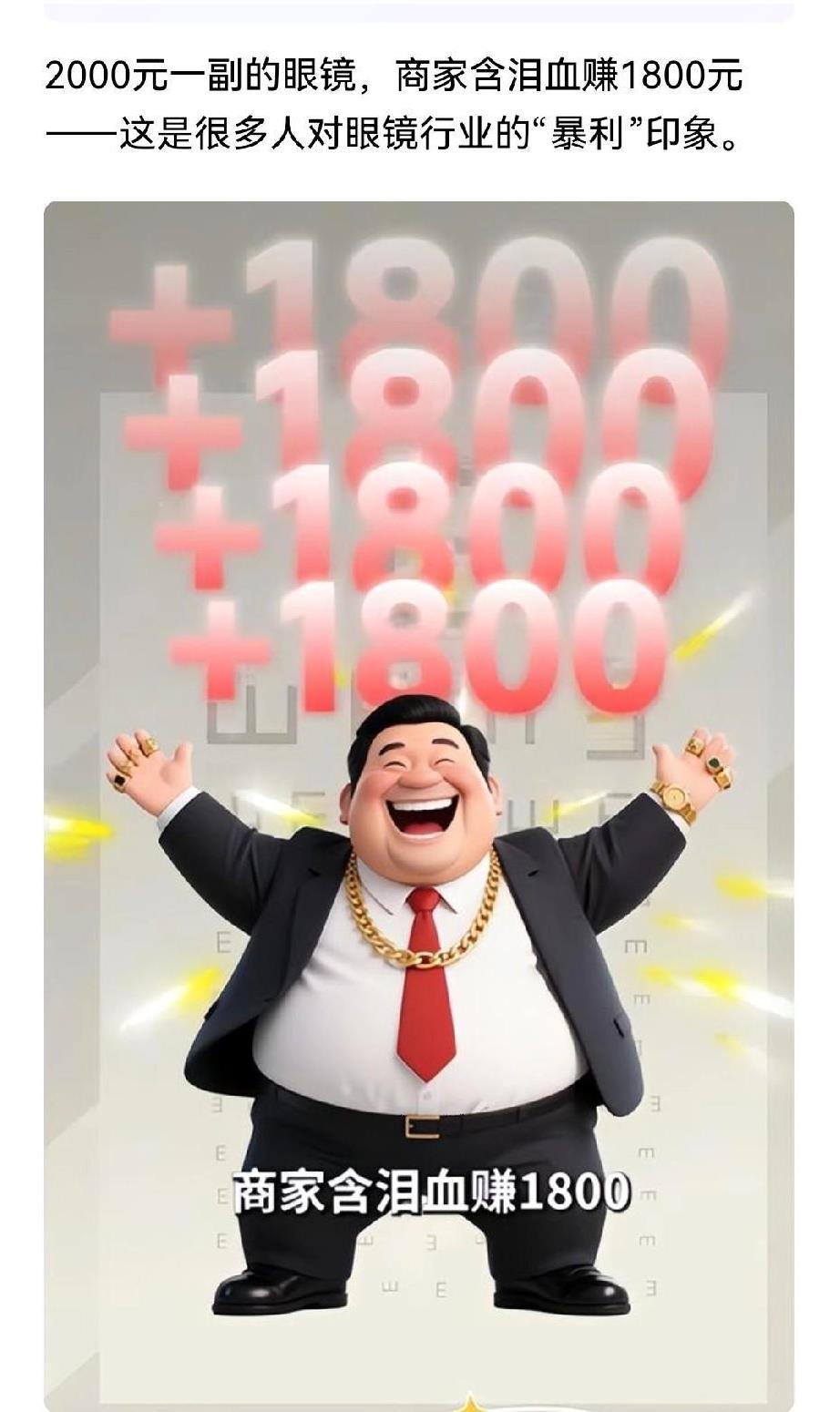过去四年里眼镜店倒闭了250万家,约是全国的三分之一,对这一点,乐见其成。眼镜店暴利早已不是秘密了,十年前我一个叔跟朋友聊天说眼镜该换了,他朋友说,走走走,我一个朋友开眼镜店的。 俩人去了,测了度数聊了一会就走了,那人说,放心,眼镜给你弄好。我那叔碍于面子当时就没问价,心里想着都是朋友,应该不至于太贵。 结果过了几天去拿眼镜,给钱的时候一问价格,1280块……这还是友情优惠价…… 我叔当时就后悔了,但是人家眼镜已经配好了,没办法,咬牙付了钱[捂脸]
