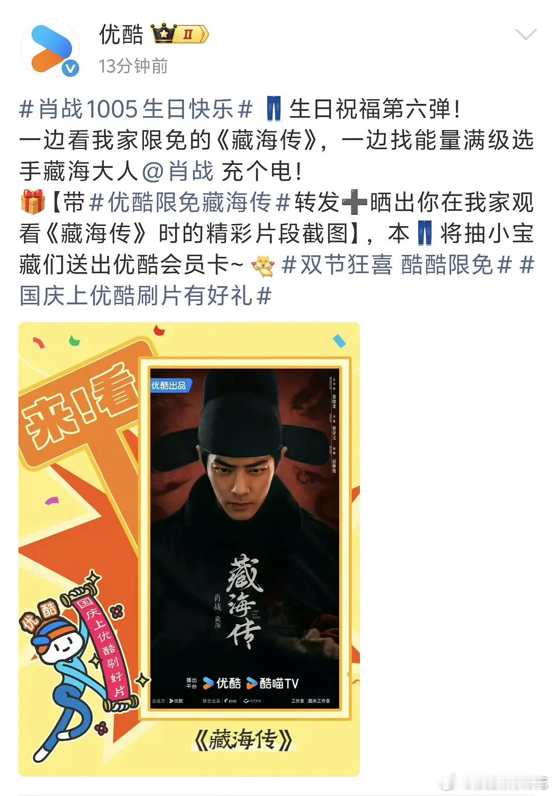 优酷真的好宠自家爆剧!给肖战庆生已连发11弹,还有藏海传爆剧感谢专栏,剧播的怎么样平台会告诉你[泪奔] ​​​