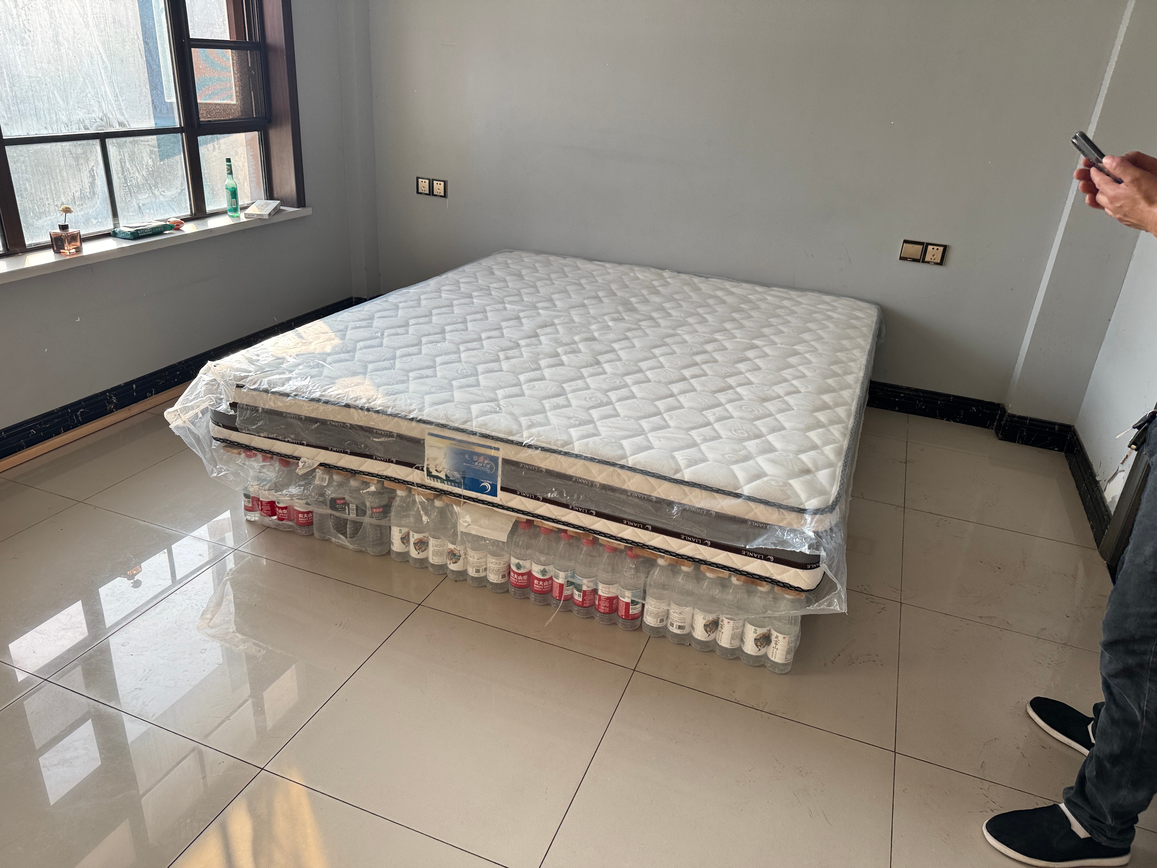师傅一共用时30分钟,包含床垫和作为架子的20件水,还有一个床垫隔板。