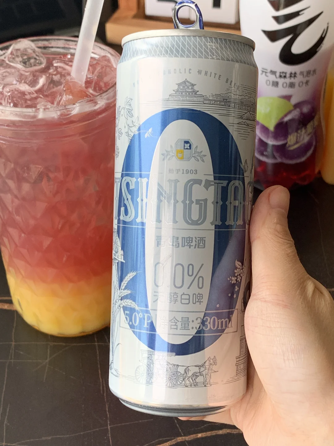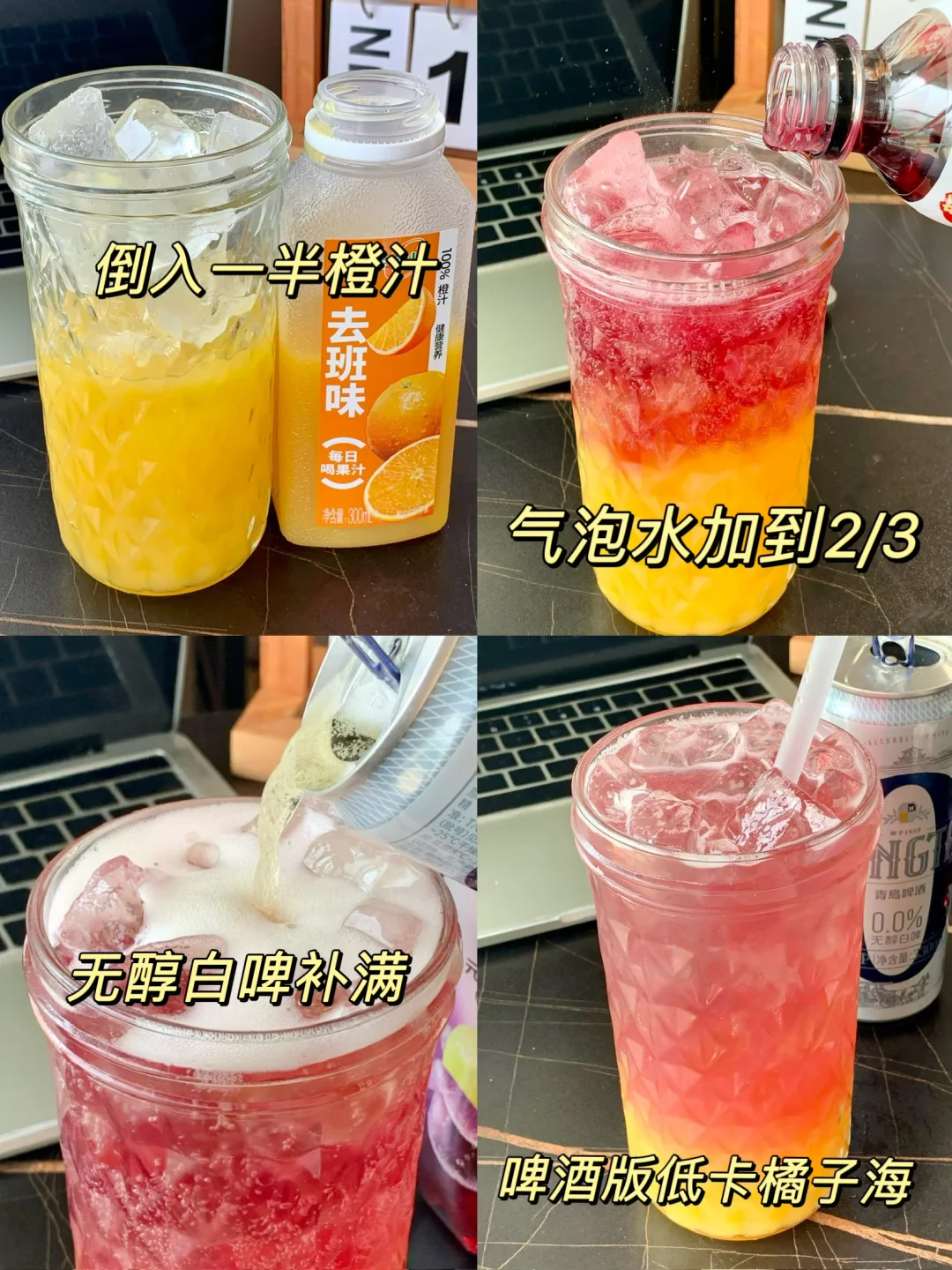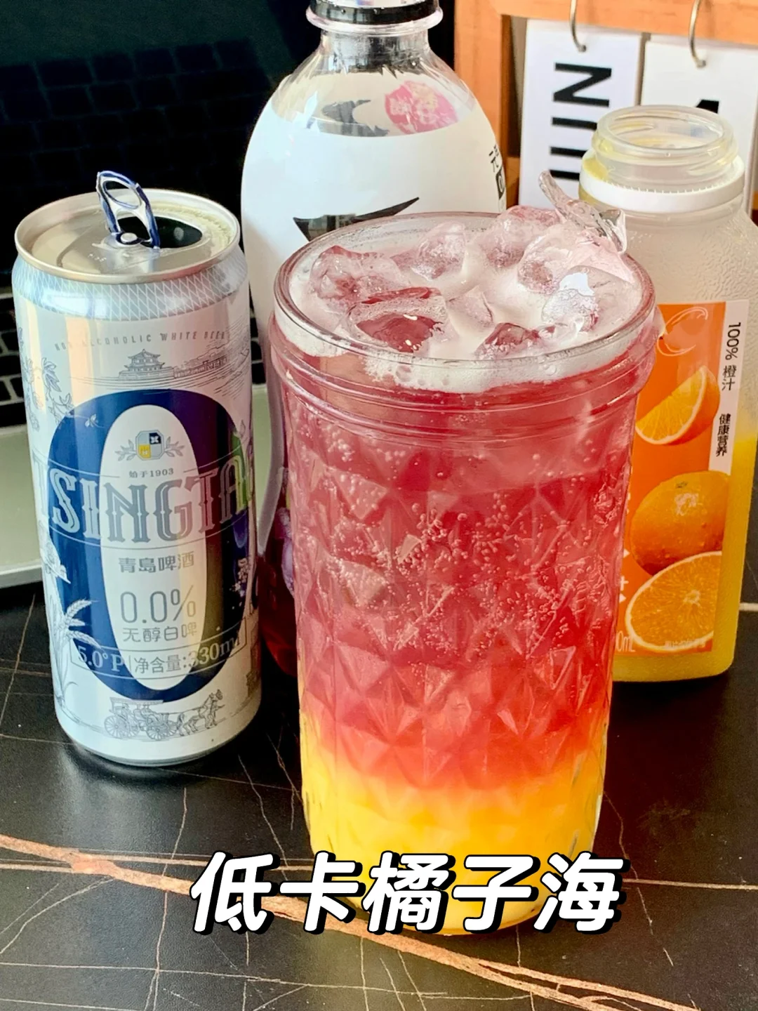 橙汁+气泡水+青岛啤酒0.0%无醇白啤