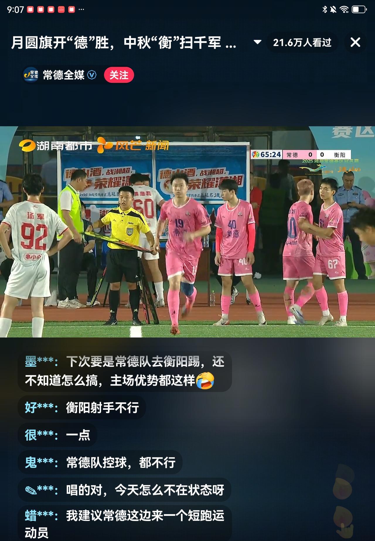 常胜将军不常了,主场作战的常德队,最终也奈何不了衡阳队,只能作罢0:0握手言和,
