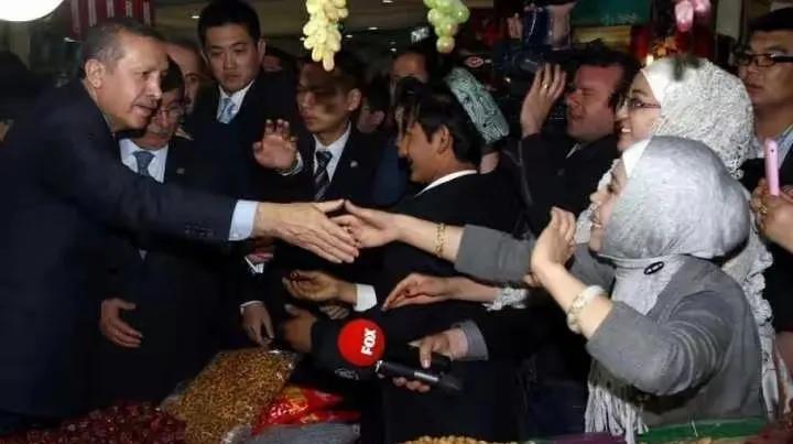这是土耳其总统埃尔多安在我国西域访问的相片。他跟我国西域的包头巾女人握手。 朱拉尼不肯跟德国女外长握手,因为跟女人握手违反他们的教规。 难道埃尔多安跟朱拉尼信的不是一个教吗? 他们教归的解释权归谁? 一人一把号,各吹各的调。统治者想如何解释,就可以如何解释。规矩都是自己定的。嘴里都是主义,心里都是生意。