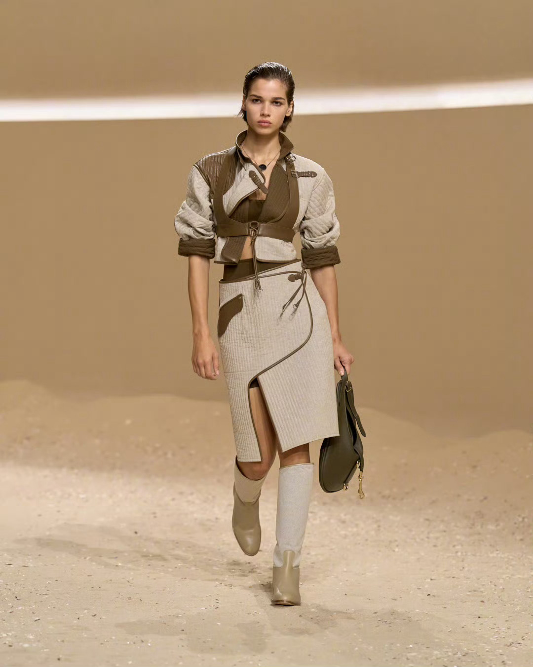 巴黎时装周爱马仕2026春夏女装系列一位自在随性又勇毅无畏的女骑士形象悠然而至。
