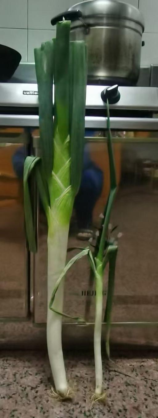 哪里的葱最大? 哪里的葱最好吃? 来看看,葱的对比, 像不像爷爷和孙子。 山东济南章丘的大葱, 和本地土生土长的大葱, 谁最好吃呢? 章丘的大葱长得漂亮, 葱白长,能够蘸酱生吃,味道清甜辣味淡, 本地葱,一般剁碎了当调味料, 或者煲汤时放葱去腥味。 友友们,您那里还有没有别的特别的葱啊? 让我见识一下。