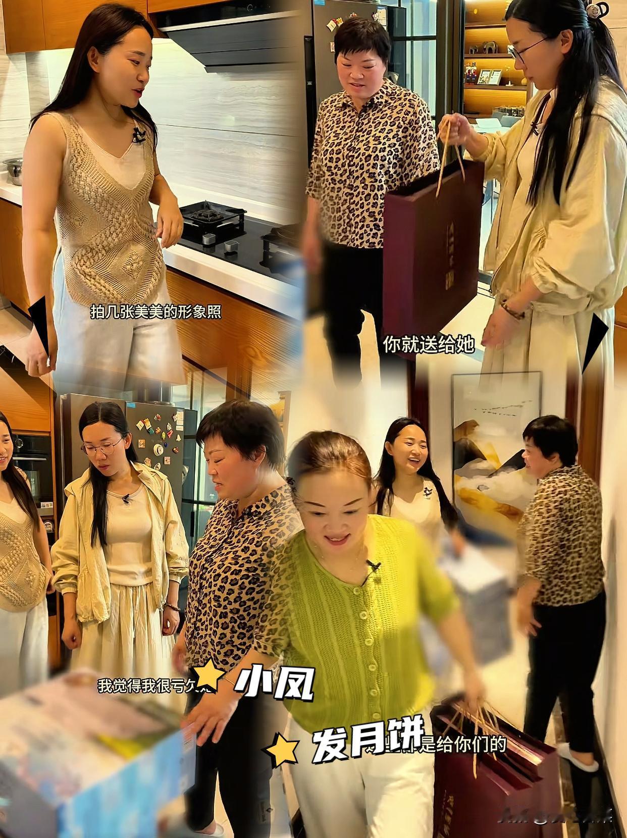 小凤给阿姨发月饼!阿姨的月饼不舍得吃,说要寄给大女儿,老大嫁的远阿姨觉得亏欠对方,果然做父母的无时无刻都在想着孩子。小凤拍的形象照太漂亮了,果然女生还是要打扮才行,她真的不适合穿无袖,那么有钱也不去练习一下形体,脖子太显老了