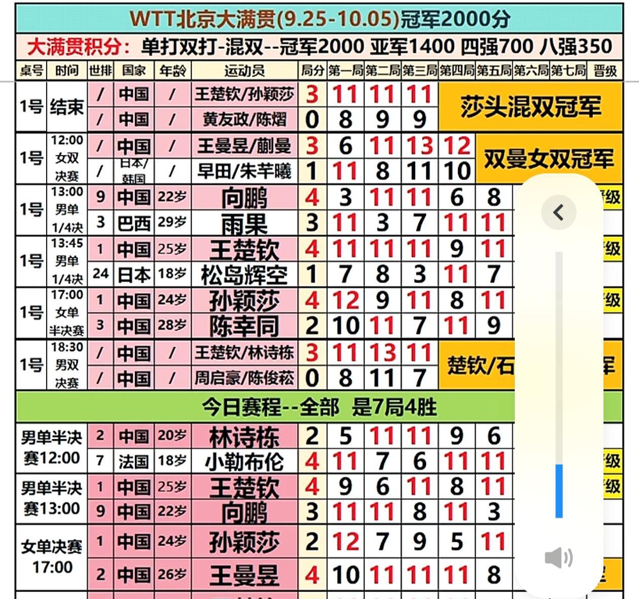王楚钦4-0横扫小勒布伦,斩获中国大满贯“三冠王”! WTT中国大满贯男单决赛: