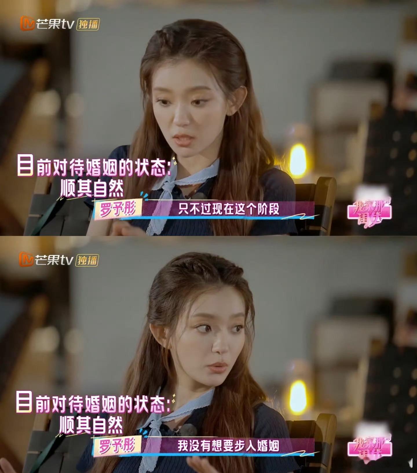 罗予彤说现阶段不想步入婚姻罗予彤明白自己的内心诉求,对婚姻没有那么强的执念,而是