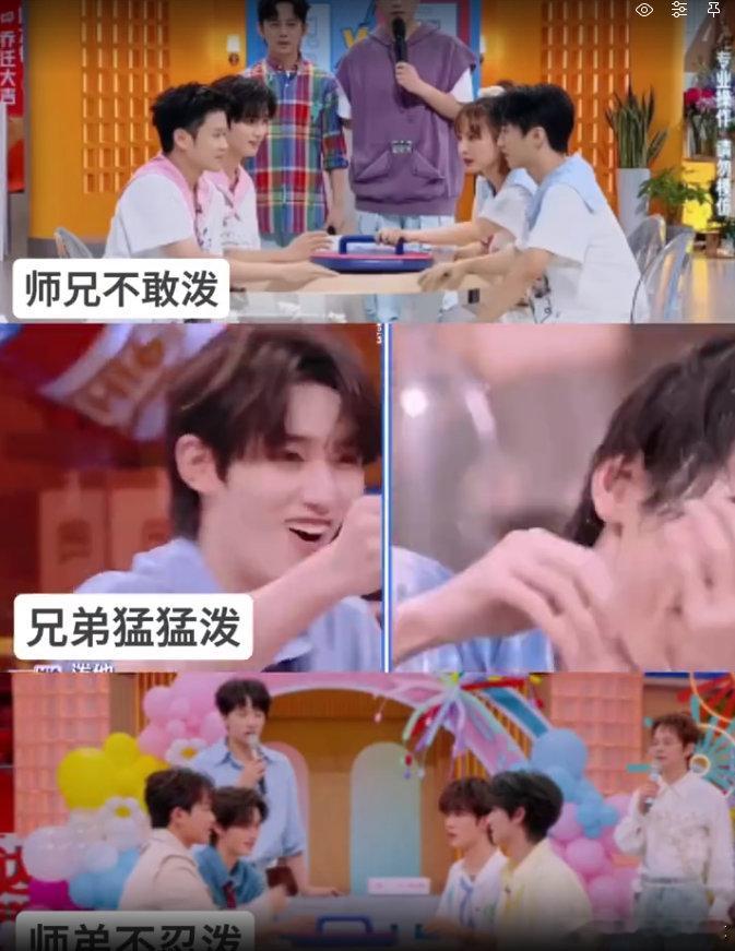 丁程鑫玩游戏有三个泼你好星期六丁程鑫在hi6的泼水游戏太有趣啦!“兄不泼,弟不